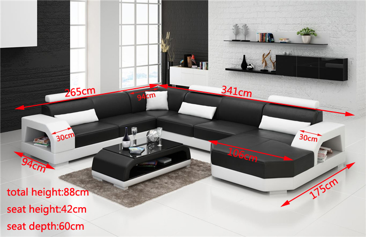 Entdecken Sie die ultimative Ergänzung für Ihr Wohnzimmer mit unserer U-förmigen Eckcouch oder Ecksofa aus Premium Lederfaserstoff. Mit Maßen von ca. 265 x 341 x 175 cm oder 175 x 341 x 265 cm bietet diese Couch Wohnlandschaft ausreichend Platz zum Entspannen. Die Sitztiefe von ca. 60 cm und die Sitzhöhe von ca. 42 cm sorgen für optimalen Komfort. Das Innengestell aus echtem Holz gewährleistet Stabilität und Langlebigkeit, während der Premium Lederfaserstoff (70% Leder / 30% Polyester) für ein elegantes Erscheinungsbild sorgt. Wählen Sie aus einer Vielzahl von Farben, darunter Türkisblau, Lavendelblau, Smaragdgrün und vielen mehr, um die Eckgarnitur an Ihren individuellen Stil anzupassen. Optional können Sie zwischen verschiedenen Materialien wie Premium Echtleder, Premium Textilstoff und Premium Vollleder wählen, um Ihre Wohnlandschaft weiter zu personalisieren. Genießen Sie Komfort und Stil in einem mit unserer hochwertigen Couch Wohnlandschaft!
