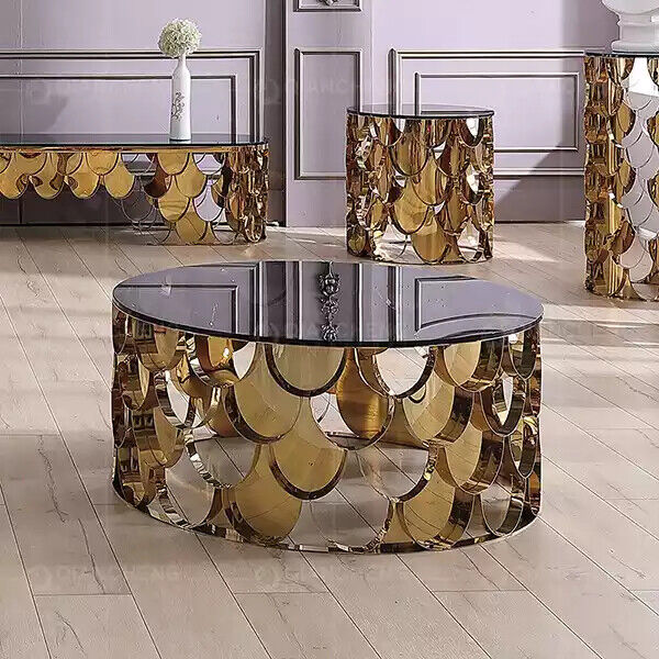 Bringen Sie mit unserem hochwertigen Couchtisch Design eine elegante Note in Ihr Wohnzimmer! Dieser runde Couchtisch mit einer Größe von ca. 100 x 100 x 45 cm ist ein echter Blickfang. Hergestellt aus Edelstahl und Glas besticht er nicht nur durch seine Qualität, sondern auch durch sein modernes Design. Als Beistelltisch oder als zentraler Punkt in Ihrem Wohnzimmer platziert, wird dieser Tisch in der Farbe wie abgebildet sicherlich alle Blicke auf sich ziehen. Lassen Sie sich von XL Möbel inspirieren und passen Sie Farben und Größen ganz nach Ihren individuellen Wünschen an!