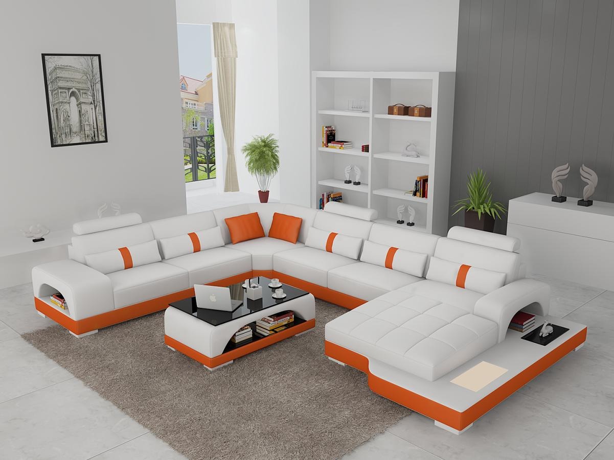 Kaufen Sie ein Ecksofa in U-Form, günstig, mit Lederpolsterung, Sofa für das Wohnzimmer