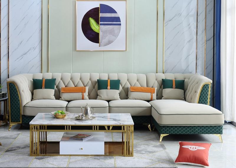 Ecksofa, preiswertes L-förmiges Sofa, hochwertige Materialien, Holzmöbel