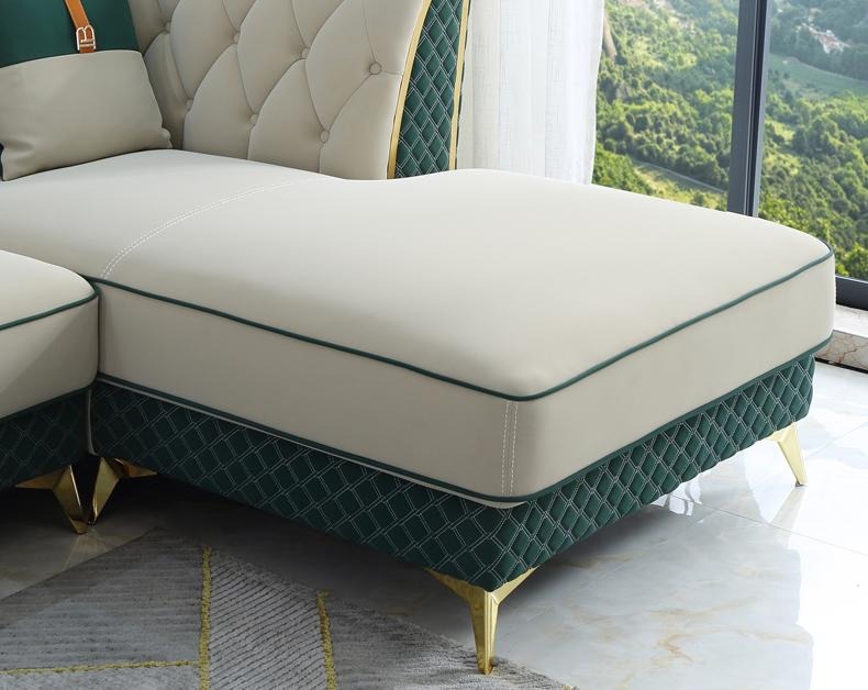 Entdecken Sie den Luxus des Design Ecksofas L-Form aus hochwertigem Premium-Lederfaserstoff. Mit einer Länge von 356 cm, einer Breite von 180 cm und einer Höhe von 92 cm bietet diese moderne Wohnlandschaft maximalen Komfort und Stil für Ihr Zuhause. Wählen Sie aus einer Vielzahl von Farben wie Türkisblau, Lavendelblau, Smaragdgrün, Korallenrot, und vielen mehr, um das Sofa an Ihre persönlichen Vorstellungen anzupassen. Optional sind auch Premium Echtleder oder Textilstoffe erhältlich, um Ihren individuellen Ansprüchen gerecht zu werden. Das Ecksofa verfügt über ein Innengestell aus echtem Holz und bietet Ihnen die ideale Kombination aus Eleganz und Funktionalität. Erleben Sie den Unterschied mit dieser exquisiten Eckcouch, die sowohl modernes Design als auch außergewöhnlichen Komfort bietet. Gönnen Sie sich jetzt das XL Möbel Erlebnis!