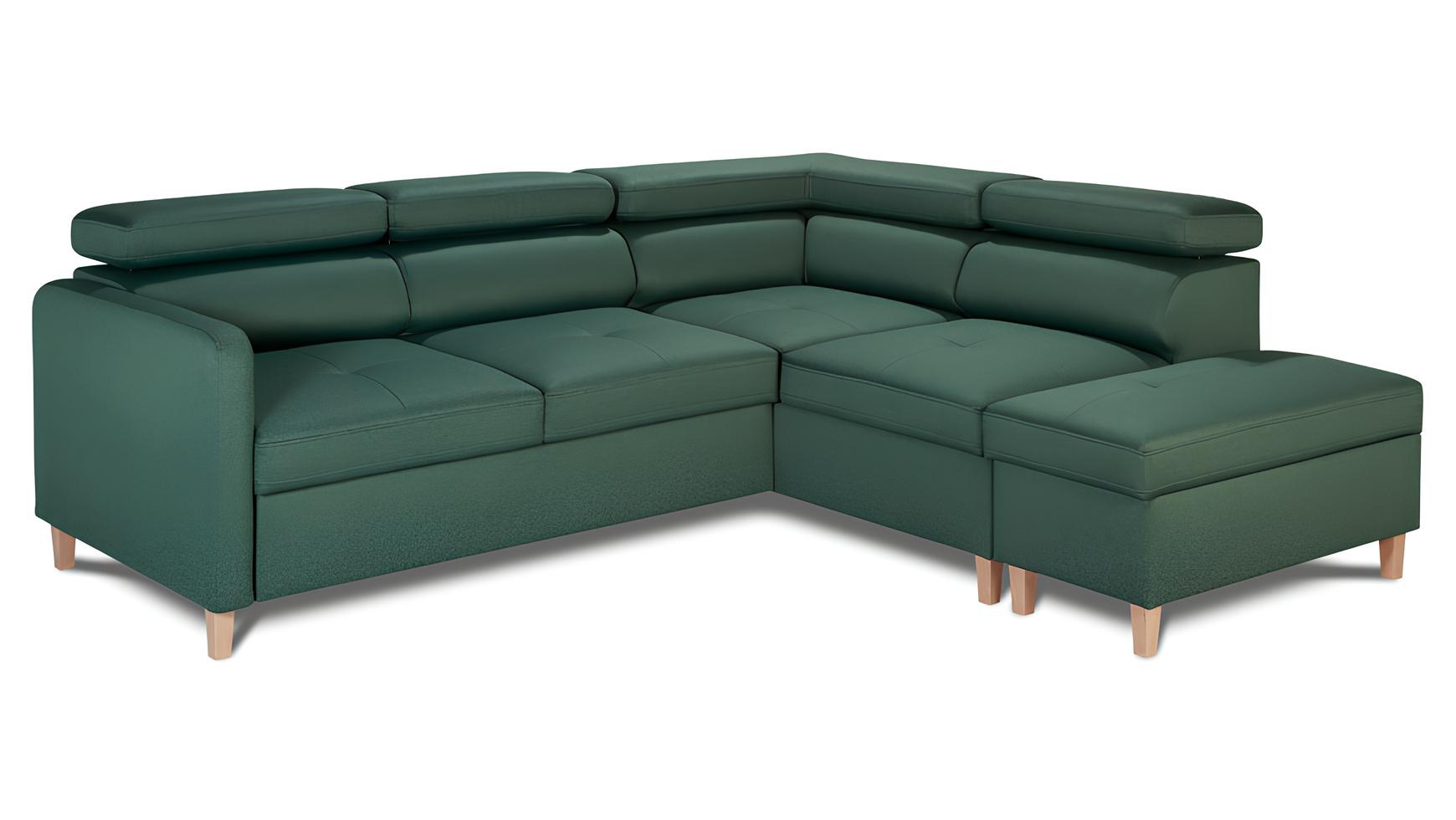 Die moderne L-förmige Eckcouch mit Schlafunktion in elegantem, tiefgrünem Pointelle ist eine harmonische Verbindung von Stil und Funktionalität. Ihr luxuriöses Design verkörpert zeitgenössische Eleganz und ergänzt mühelos jede raffinierte Einrichtung. Mit großzügigen Maßen bietet sie nicht nur Platz für Geselligkeit, sondern verwandelt sich im Handumdrehen in eine komfortable Schlafgelegenheit, perfekt für unerwartete Gäste. Die sorgfältige Verarbeitung und die hochwertigen Materialien garantieren Langlebigkeit und höchsten Sitzkomfort. Diese Couch ist mehr als ein Möbelstück; sie ist ein Statement für einen exklusiven Lebensstil, der das Besondere zelebriert und Ihr Zuhause zu einem Ort der Entspannung und des Genusses erhebt.