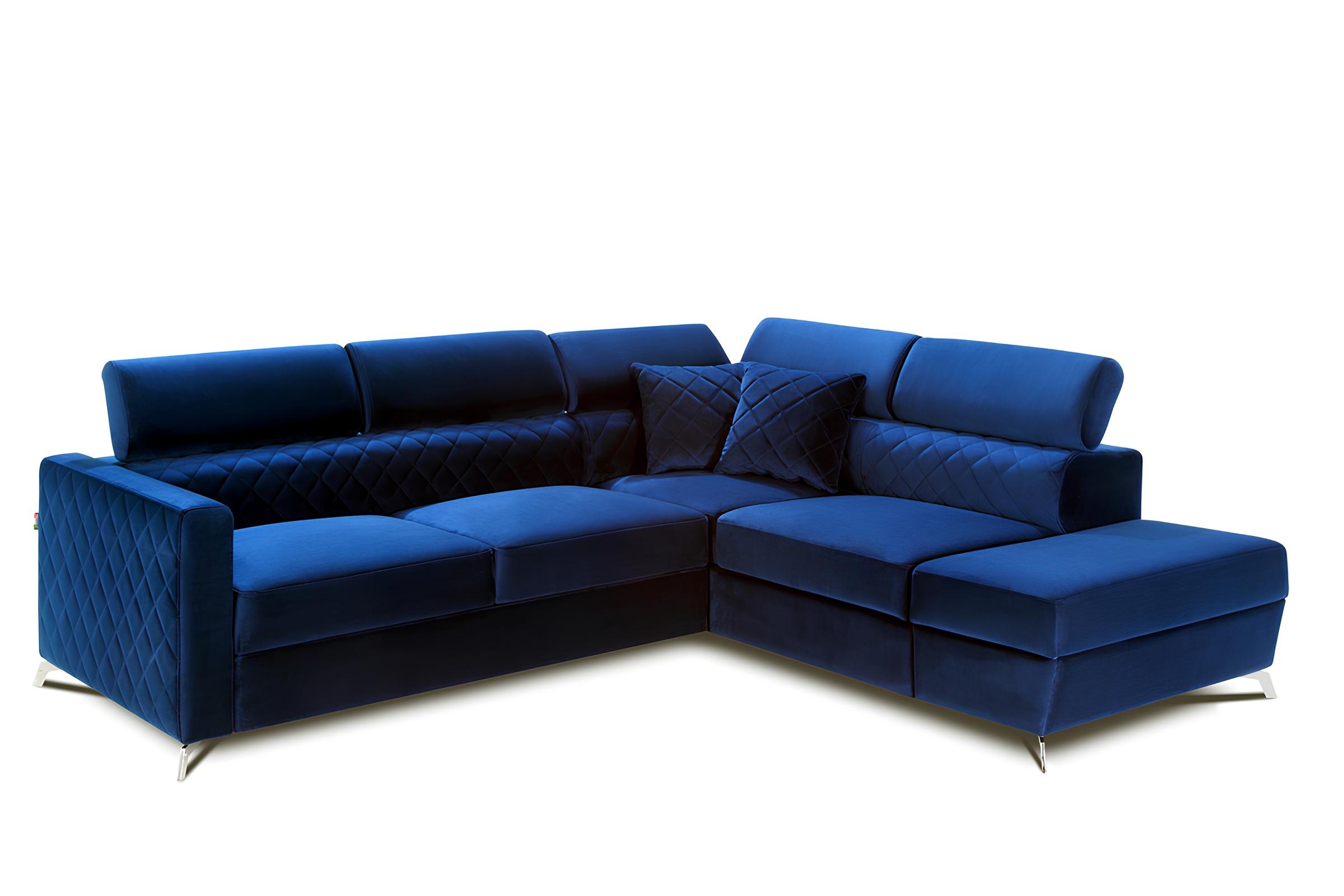 Die elegante L-förmige Sofalösung vereint zeitloses Design mit höchstem Komfort. In einem luxuriösen blauen Pointelle-Stoff gefertigt, verwandelt sie Ihren Wohnraum in eine Oase des Stils. Die geschmackvolle Polsterung bietet nicht nur eine einladende Sitzgelegenheit, sondern verwandelt sich mühelos in eine komfortable Schlafgelegenheit, ideal für unerwartete Gäste. Jedes Detail dieser Sofa-Kreation zeugt von erstklassiger Handwerkskunst und einem unermüdlichen Streben nach Perfektion. Mit über 20 Jahren Erfahrung in der Herstellung von Luxusmöbeln ist dieses Stück eine Investition in ein exklusives Lebensgefühl, das Ihrem Zuhause eine unvergleichliche Eleganz verleiht.