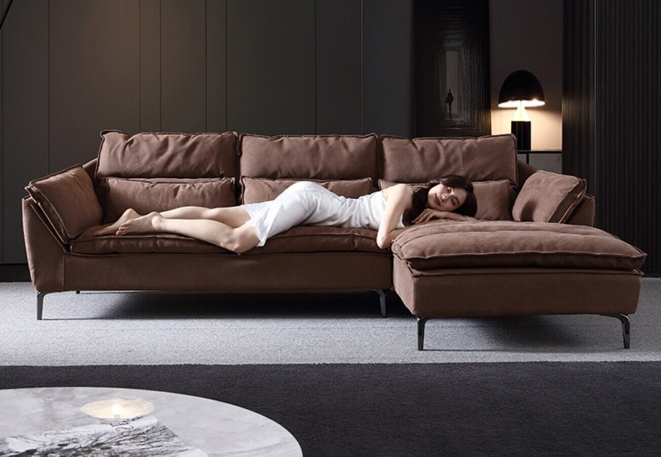 Wohnzimmer Design Ecke Textil Leder Braun Luxus Sofa Couch Polsterung L-Form Neu