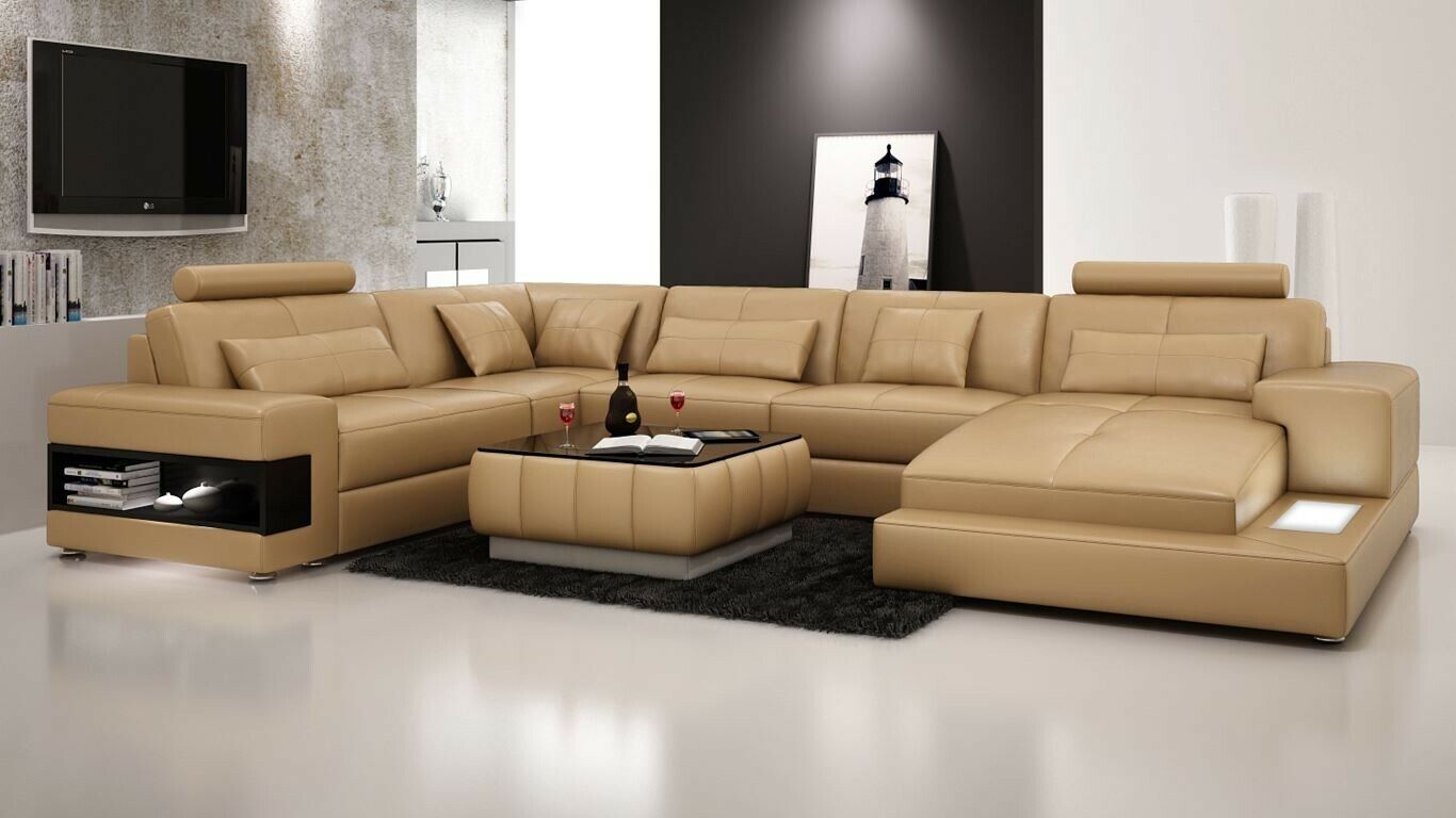 Ecksofa Ledersofa Polster Wohnlandschaft Couch Sofa Eckgarnitur U Form