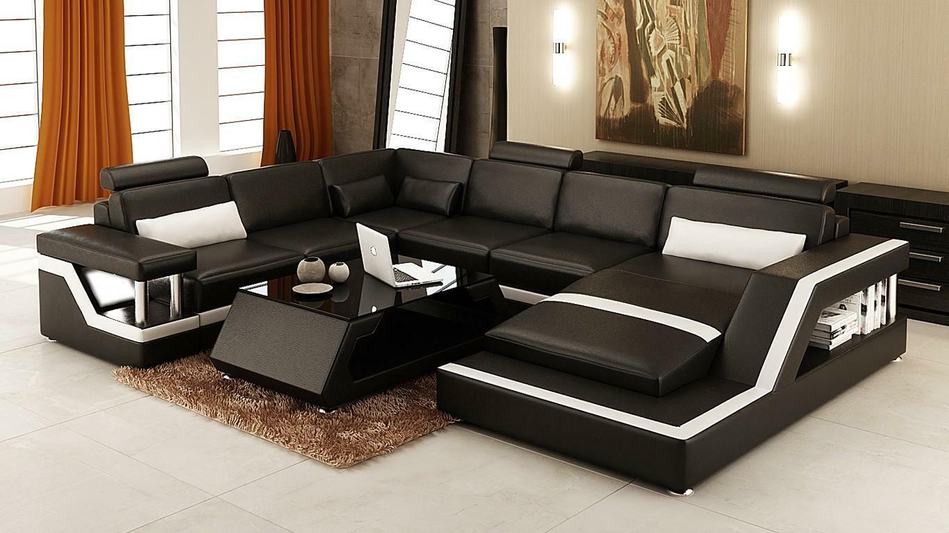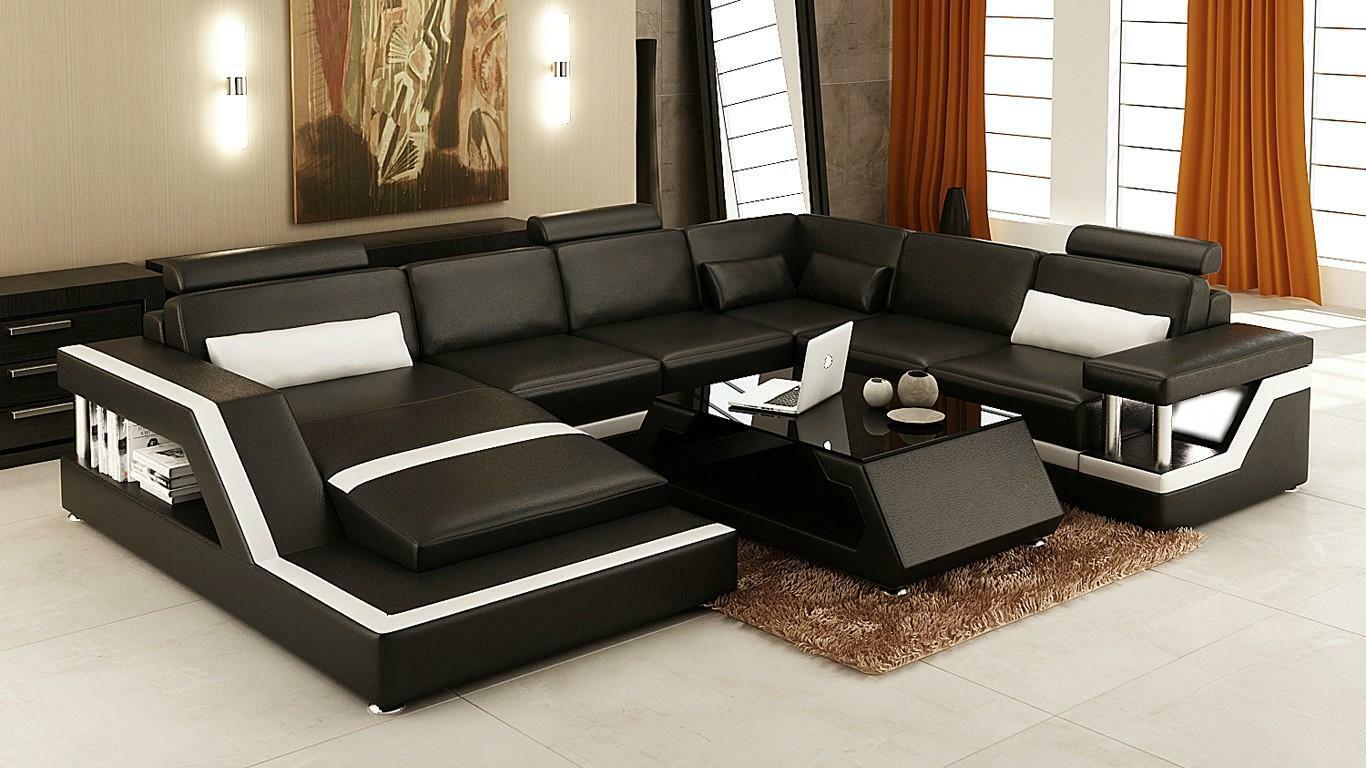 Beleuchtete Wohnzimmer Ecksofa Polster Eck Sitz Garnitur Leder Couchen