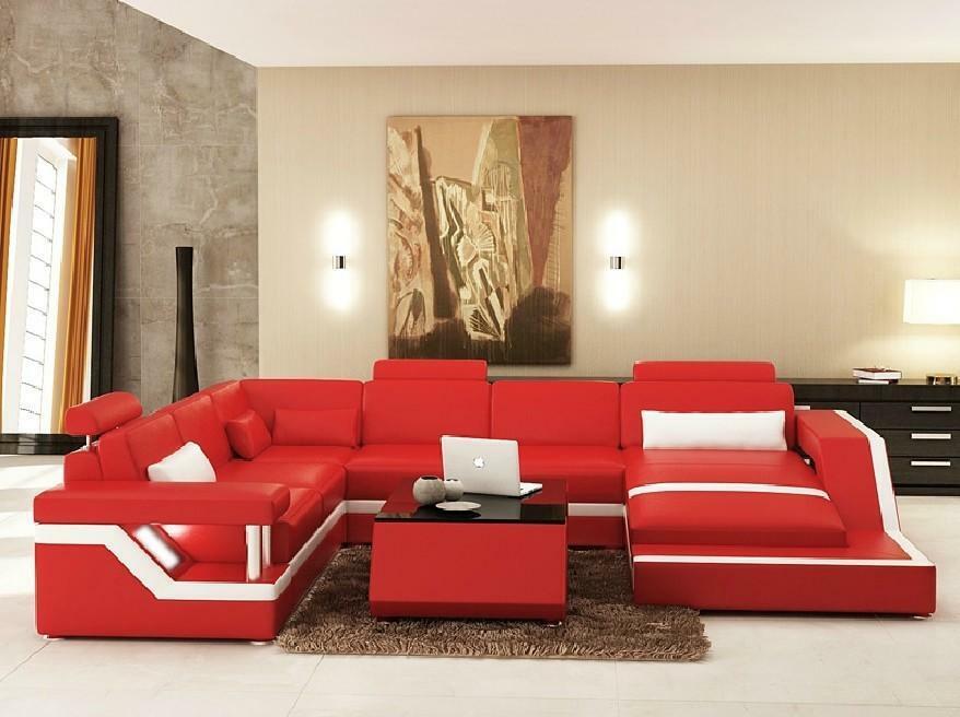 Erleben Sie luxuriösen Komfort mit unserem beleuchteten Wohnzimmer Ecksofa aus hochwertigem Leder! Das maßgefertigte U-förmige Polstermöbel bietet nicht nur Stil, sondern auch Funktionalität. Wählen Sie aus einer Vielzahl von Farben wie Türkisblau, Korallenrot, Olivgrün und vielen mehr, um Ihren Wohnbereich zu verschönern. Hergestellt aus Premium Lederfaserstoff (70% Leder / 30% Polyester) bietet dieses Ecksofa eine optimale Kombination aus Eleganz und Langlebigkeit. Optional können Sie zwischen verschiedenen Ledergruppen wählen, darunter Premium Echtleder und Premium Textilstoff, um Ihren individuellen Stil zu unterstreichen. Das Ecksofa in den Maßen ca. 191 x 338 x 262 cm oder 262 x 338 x 191 cm (Länge x Breite x Höhe) bietet ausreichend Platz und Komfort für gemütliche Abende zuhause. Das Innengestell aus echtem Holz sowie der Federkern sorgen für Stabilität und Bequemlichkeit. Schaffen Sie mit diesem einzigartigen Ecksofa einen eleganten Blickfang in Ihrem Wohnzimmer und genießen Sie entspannte Stunden in stilvollem Ambiente. Gönnen Sie sich den Luxus und bestellen Sie noch heute Ihr neues Lieblingsmöbelstück!
