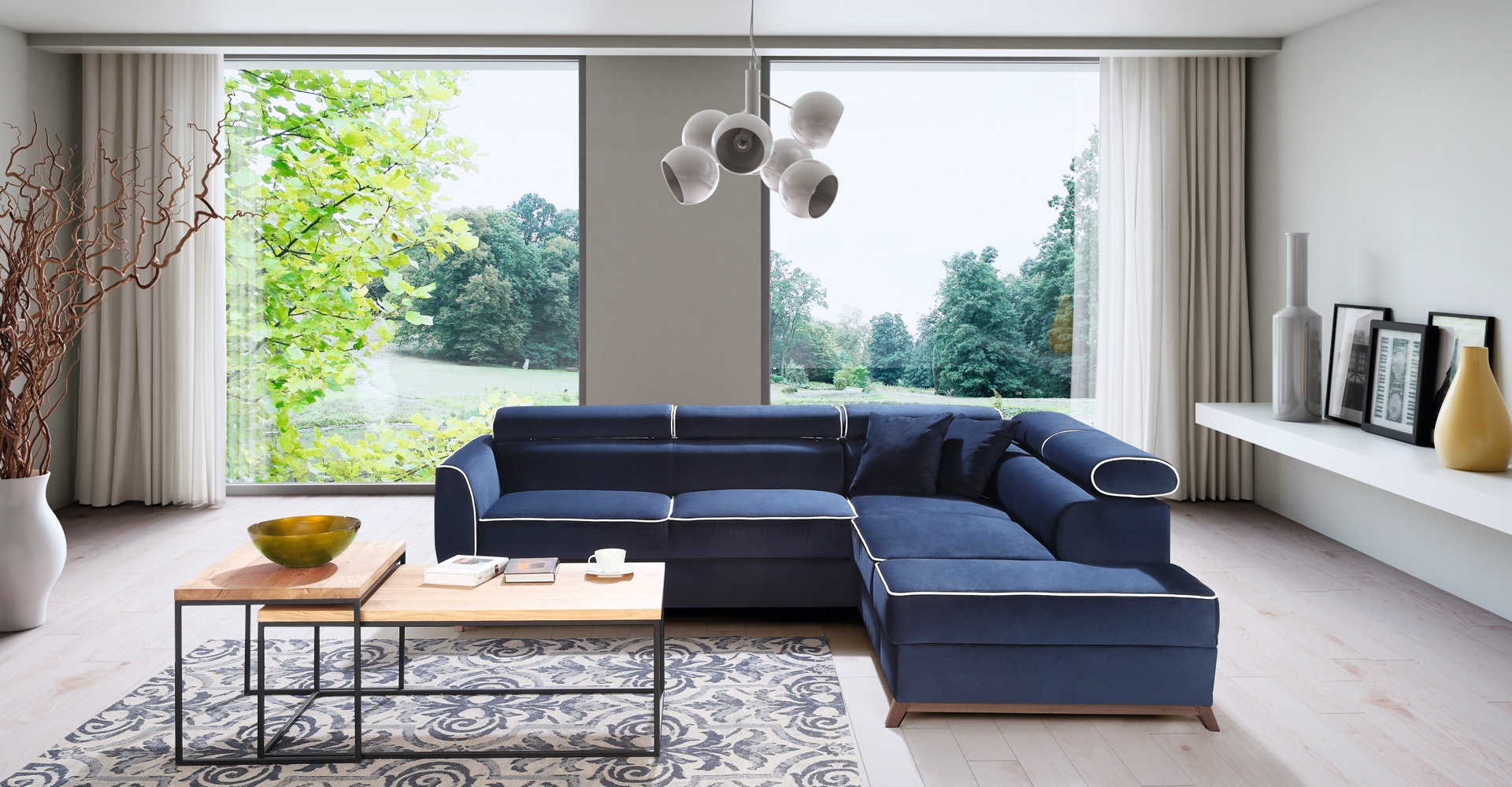 Moderní modrá rohová pohovka z textilu | xlmoebel.at