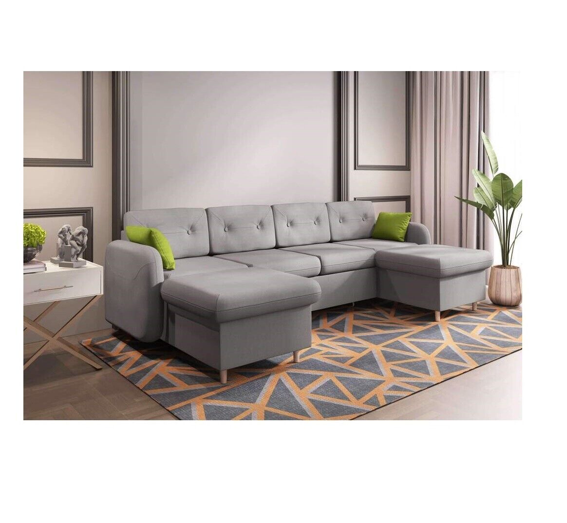 Wohnlandschaft Bettfunktion Stoff Ecksofa U-Form Deko Couch Design Polster
