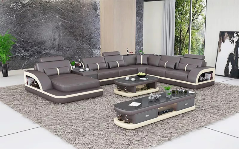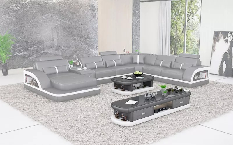 Kaufen Sie ein Ecksofa in U-Form, günstig, mit Lederpolsterung, Sofa für das Wohnzimmer
