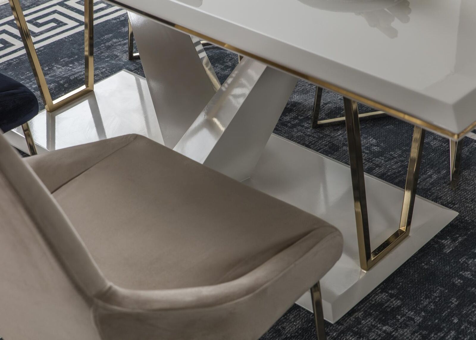 Entdecken Sie die Essgruppe "Esszimmer Esstisch Garnitur Ess Stuhl" - ein modernes 5-teiliges Set, das Ihrem Essbereich Stil verleiht. Der Esstisch hat Maße von ca. 195 x 95 x 75 cm, während die Stühle ca. 55 x 42 x 96 cm groß sind. Das Set ist in einem ansprechenden Holz- und Stoffdesign gehalten, perfekt abgebildet auf den Bildern. Die XL Möbel präsentiert eine breite Auswahl an Esszimmermöbeln und bietet maßgeschneiderte Lösungen für Ihre individuellen Anforderungen. Machen Sie Ihren Essbereich zu einem Ort des Genusses und der Eleganz mit dieser modernen Essgruppe!