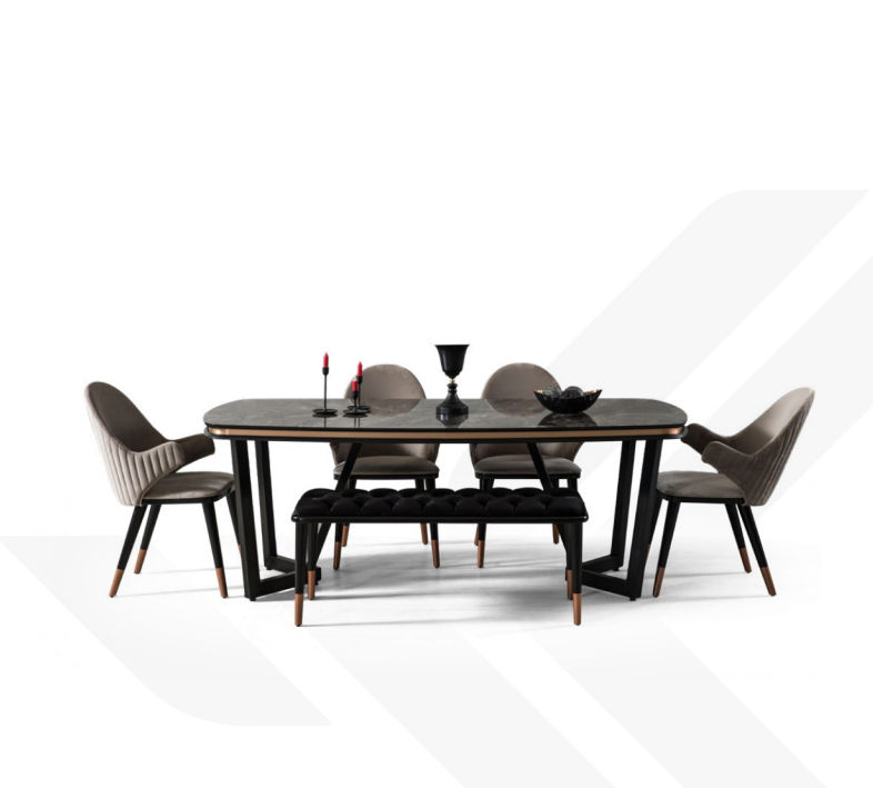 Esszimmer Set Besteht aus Esstisch+4x Stühle Schwarz Farbe 6tlg.