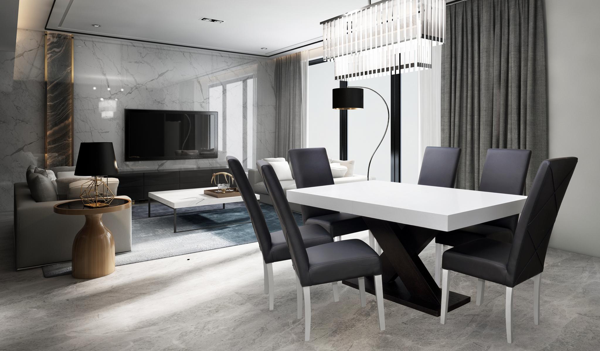 Entdecken Sie das moderne Esszimmer Set "Vitrine Esstisch 6x Stuhl Garnitur Tisch Gruppe 7tlg. Set" von XL Möbel! Das Set besteht aus einem ausziehbaren Esstisch mit den Maßen ca. 90 x 160 cm (erweiterbar auf ca. 90 x 210 cm) und 6 Stühlen, die eine Höhe von ca. 105 cm haben. Die Stühle bestechen durch eine bequeme Sitzhöhe von ca. 50 cm und sind in einem ansprechenden Design gehalten. Das Esszimmer Set ist in der Farbe wie abgebildet erhältlich, aber auf Anfrage sind auch andere Farben verfügbar. Gegen einen Aufpreis von 50,00 EUR können Sie sogar die Farbe des Holzes oder des Textils ändern. Die Tischplatte besteht aus hochwertigem Holz (Furnier), was dem Set eine edle Note verleiht. Bringen Sie mit diesem stilvollen Esszimmer Set neuen Schwung in Ihren Essbereich und genießen Sie gemütliche Stunden mit Familie und Freunden!