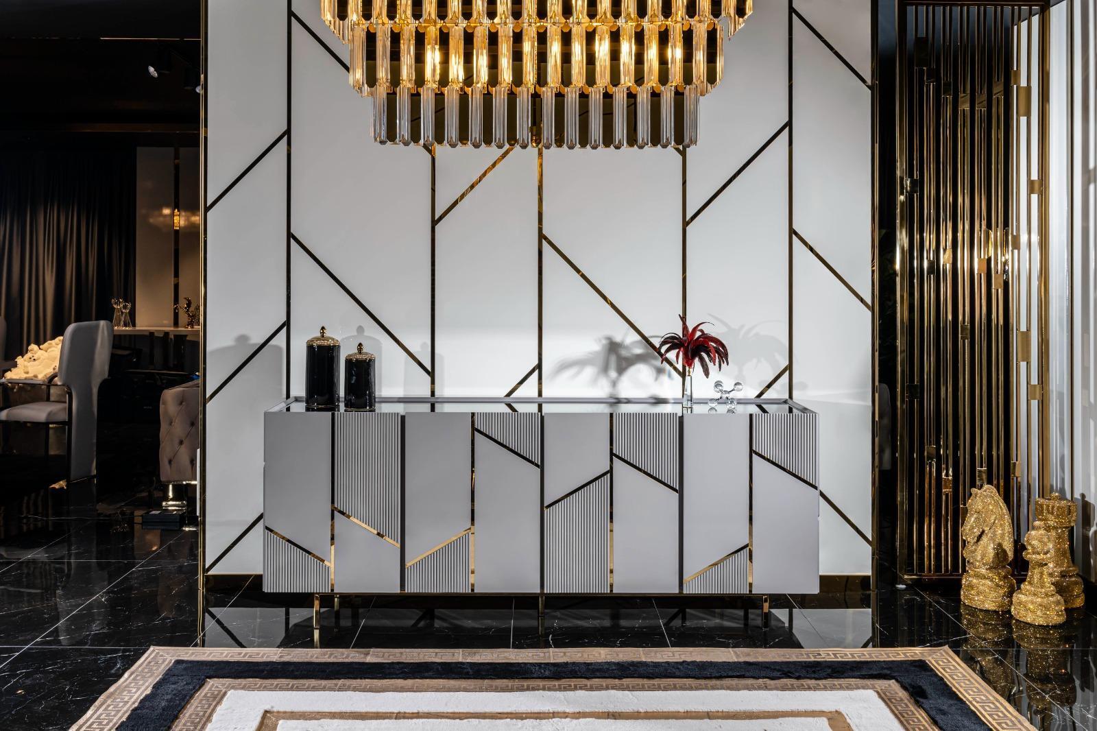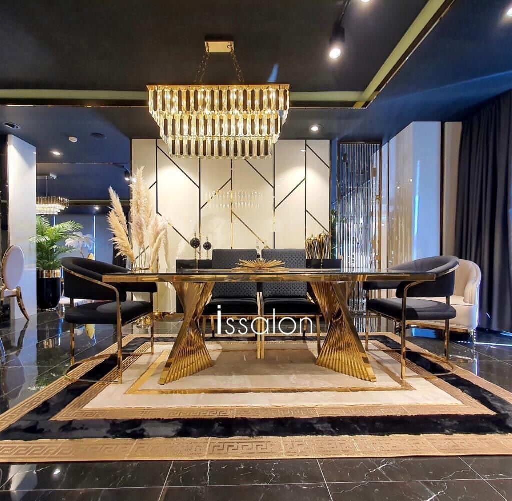 Esszimmer Set Stühle Esstisch Anrichte Tische 6tlg Edelstahl Gold