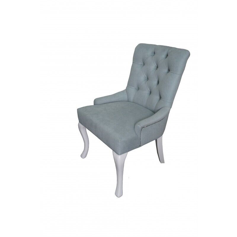 Klassischer Chesterfield Blauer Stuhl Polster Sessel Textil Lehnstuhl
