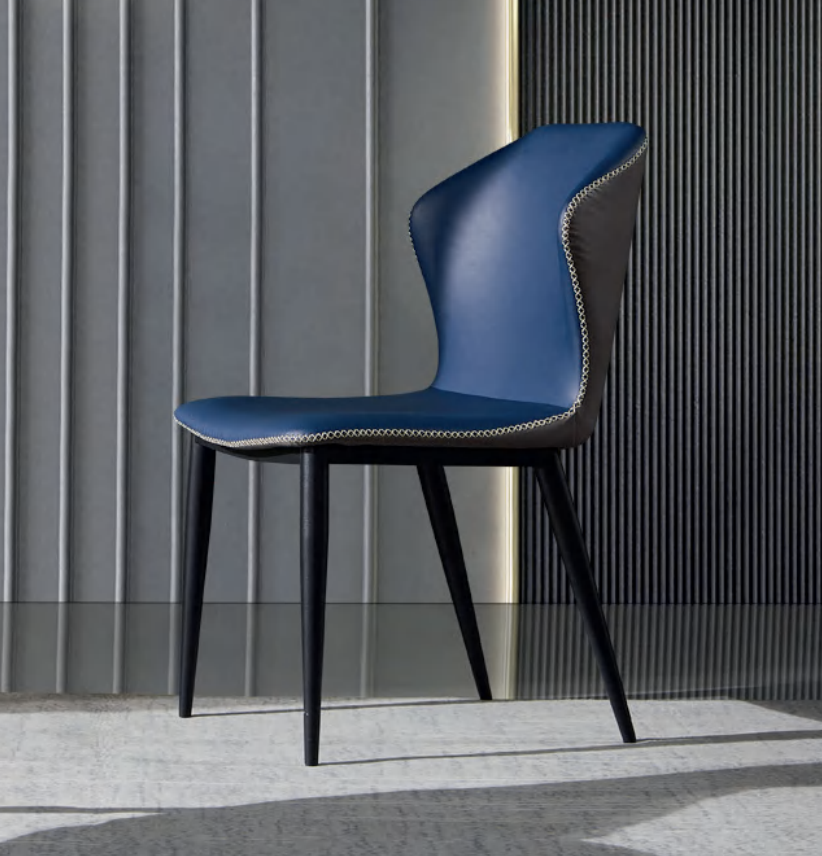 Schwarz-Blauer Esszimmerstuhl Holzfüße Stilvolle Kunstlederstühle Stuhl