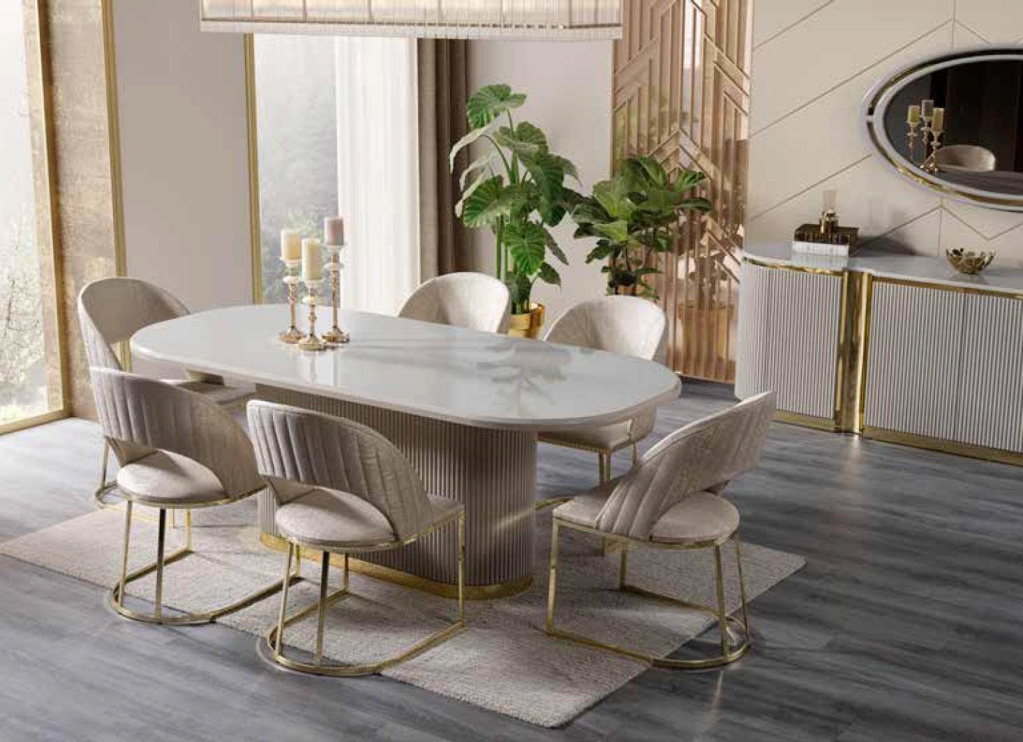 Entdecken Sie unsere elegante ovale Esstisch Essgruppe, die perfekte Ergänzung für Ihr Esszimmer! Der Esstisch hat Maße von ca. 209 x 100 x 77 cm und wird mit 6 Stühlen geliefert, die jeweils ca. 52 x 64 x 89 cm groß sind. Hergestellt aus hochwertigem Holz, Textil und Metall, ist dieses Set nicht nur stilvoll, sondern auch langlebig. Die Farbe entspricht der Abbildung, aber auf Anfrage sind auch andere Farben erhältlich. Lassen Sie sich von XL Moebel beraten und finden Sie die perfekte Esszimmergarnitur für Ihre Bedürfnisse! Maßgeschneidert und hochwertig - für einen einladenden Essbereich.