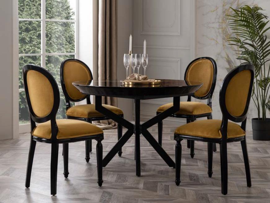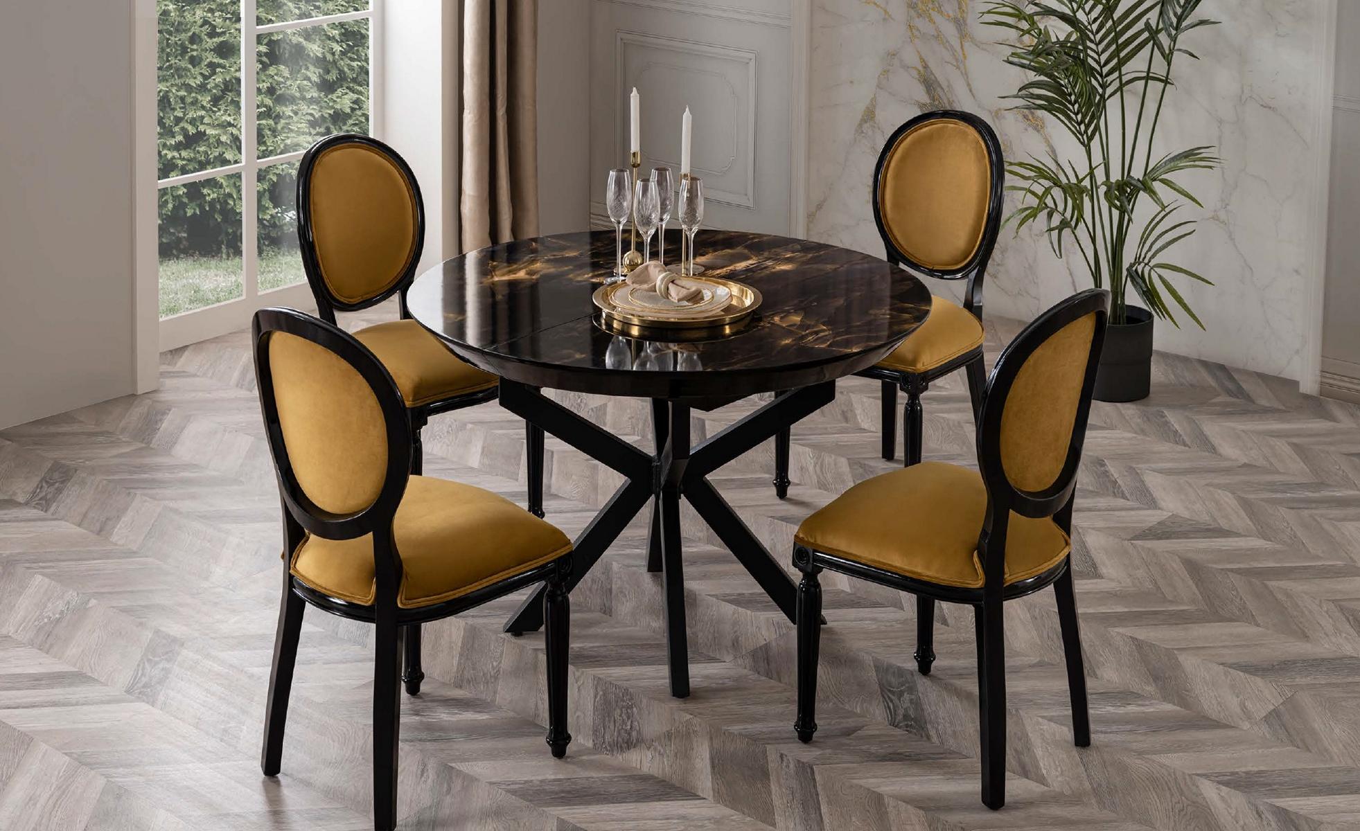 Erneuern Sie Ihr Esszimmer mit diesem eleganten 5-teiligen Esszimmer-Set von XL Moebel! Der Säulen Rundtisch ist ein wahres Highlight mit Maßen von ca. Ø 120 x 77 cm, erweiterbar von 120 cm auf 160 cm. Die 4 passenden Stühle bieten nicht nur Komfort, sondern auch ein modernes Design mit Maßen von ca. 51 x 55 x 90 cm und einer Sitzhöhe von ca. 44 cm. Aus echtem Holz gefertigt, strahlt dieses Set Klasse aus und verleiht Ihrem Esszimmer eine zeitlose Eleganz. Sichern Sie sich jetzt Ihre Wunschfarbe und erfüllen Sie sich Ihren Traum von einem stilvollen Essbereich!