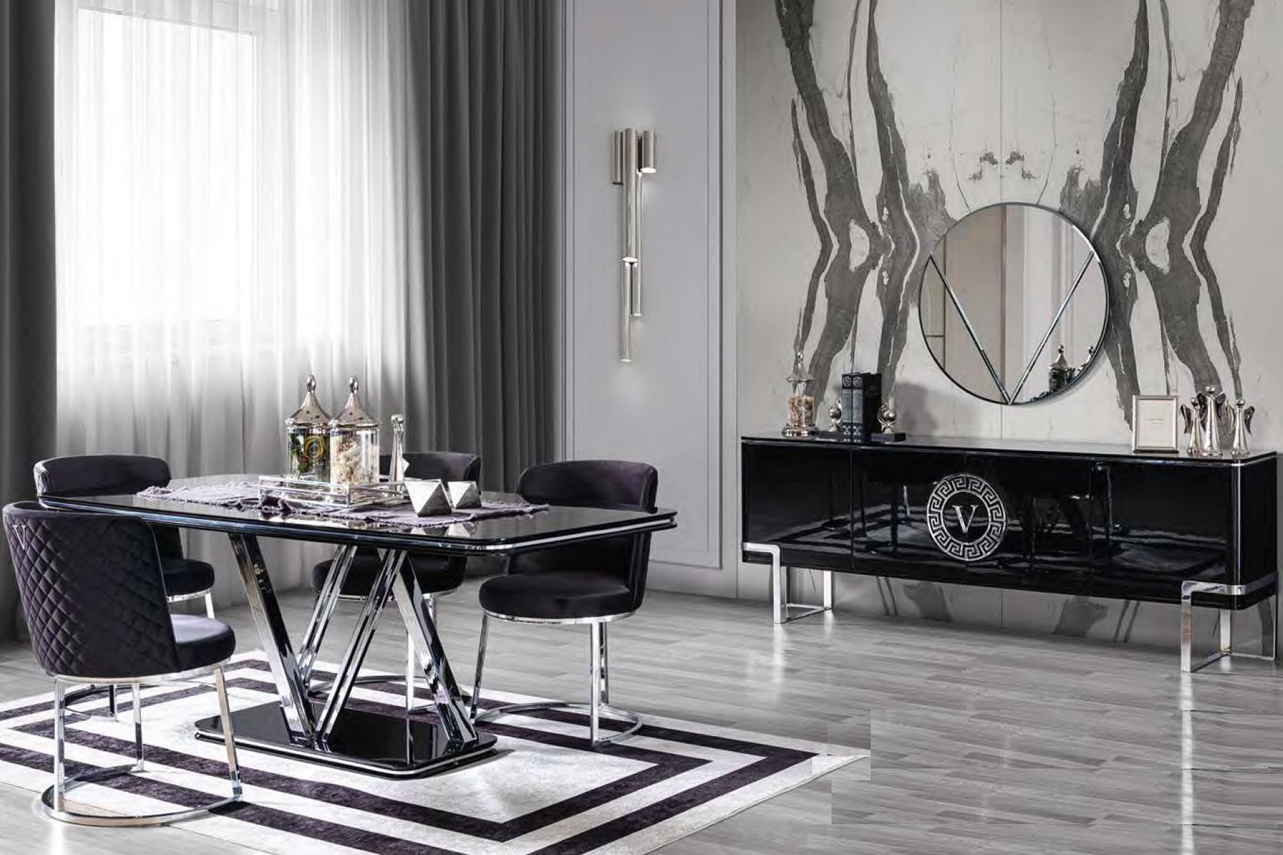 Tisch Esszimmer Garnitur Schwarzes Design Esstisch 4x Stühle 5tlg.