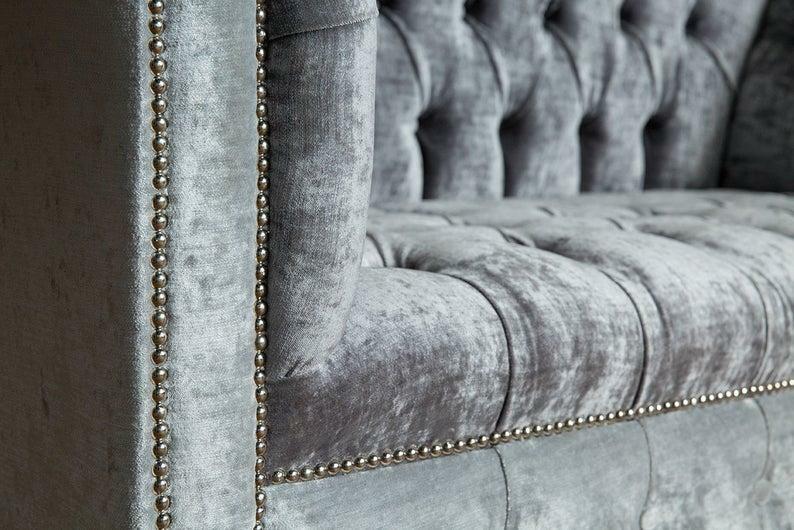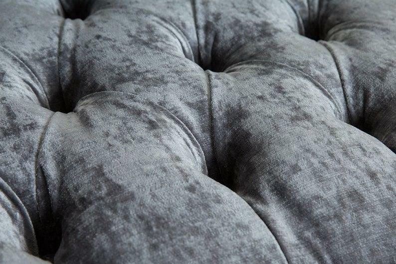 Entspannen Sie in Luxus und Stil mit unserer Design Chesterfield Stoff Couch Chaise Lounge! Diese exquisite Chaiselongue bietet Ihnen nicht nur höchsten Komfort, sondern auch ein zeitloses Design, das Ihre Wohnräume elegant bereichert. Mit Maßen von ca. 185 cm Länge, 74 cm Höhe und 90 cm Tiefe bietet diese Chaiselounge eine großzügige Sitzfläche mit einer Sitztiefe von ca. 60 cm und einer Sitzhöhe von ca. 44 cm. Dabei haben Sie die Möglichkeit, die Farbe sowie das Material frei zu wählen. Ob Premium Kunstleder, Premium Echtleder aus Italien, Premium Samt Stoff oder den fleckenabweisenden Magic Home Stoff - Sie haben die Qual der Wahl, um Ihren persönlichen Stil zu verwirklichen. Zudem stehen verschiedene Veredelungsoptionen wie Kristallsteine oder echte Swarovski Kristallsteine für einen zusätzlichen Hauch von Eleganz zur Verfügung. Also worauf warten Sie noch? Gestalten Sie Ihr ganz persönliches Stück Luxus und gönnen Sie sich mit unserem Chesterfield-Sofa ein exklusives Wohnaccessoire, das Ihre Gäste begeistern wird!