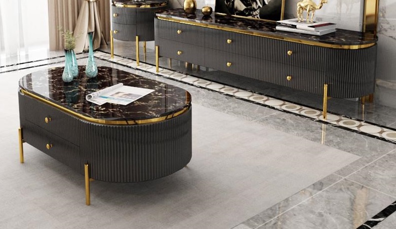 Wohnzimmermöbel Set Designer Wohnzimmer Sideboard Couchtisch Beistelltisch 3tlg.