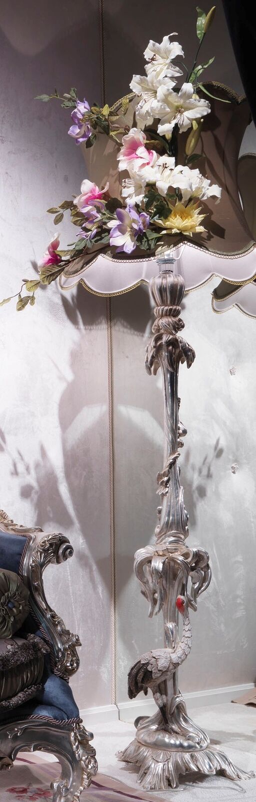 Entdecken Sie die Eleganz und den Luxus der Stehleuchte Luxus Echtholz Lampe von Boiserie Italia! Diese exquisit handgefertigte Stehlampe besticht durch ihr elegantes Design und die Verwendung hochwertiger Materialien. Die Lampe mit Vogel-Details ist nicht nur eine Lichtquelle, sondern auch ein Kunstwerk, das Ihrem Zuhause eine besondere Note verleiht. Die Maße von ca. Ø 39 x 148 cm machen sie zu einem beeindruckenden Blickfang in jedem Raum. Gönnen Sie sich jetzt diese einzigartige Stand Leuchte und tauchen Sie in die Welt des italienischen Designs ein!