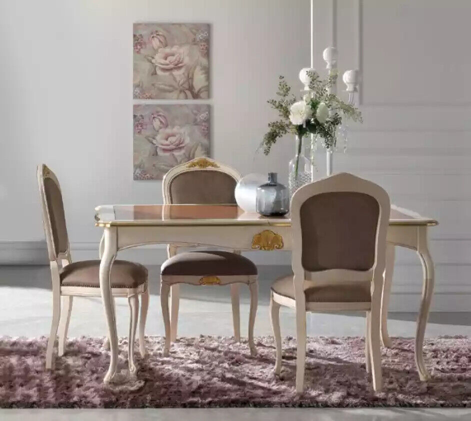 Bringen Sie zeitlose Eleganz in Ihr Esszimmer mit diesem 5-teiligen Esszimmer-Set von Giuliacasa aus Italien. Handgefertigt und von höchster Qualität, besticht dieser Esstisch mit den Maßen ca. 160 x 100 x 78 cm durch klassisches Design und edles Holzmaterial. Die dazu passenden 4 Stühle mit ca. 50 x 55 x 102 cm ergänzen perfekt das Ensemble. Verleihen Sie Ihrem Zuhause italienischen Flair und genießen Sie luxuriöse Möbel von Giuliacasa. Gönnen Sie sich dieses Set und erleben Sie den exquisiten "Made in Italy" Stil, der für Qualität und zeitlose Schönheit bürgt. Gönnen Sie sich diese exklusive Essgruppe und machen Sie Ihr Esszimmer zu einem stilvollen Highlight!