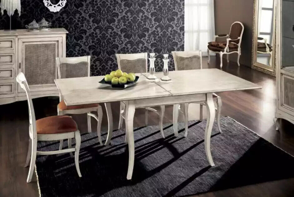 Entdecken Sie die luxuriöse Esszimmergarnitur von Giuliacasa aus Italien! Dieses 7-teilige Set besteht aus einem Esstisch, 4 Stühlen, einem Sideboard und einer Vitrine, alle handgefertigt aus hochwertigem Holz. Der Esstisch misst ca. 110 x 110 x 78 cm und die Stühle haben die Maße ca. 52 x 60 x 105 cm. Das Sideboard ist ca. 200 x 52 x 113 cm groß und die Vitrine misst ca. 163 x 45 x 207 cm. In einem eleganten Design und der Farbe wie abgebildet passt dieses Set perfekt in Ihr Esszimmer. Gönnen Sie sich italienische Eleganz und zeitlose Klasse für Ihr Zuhause mit den exquisiten Möbeln von Giuliacasa!