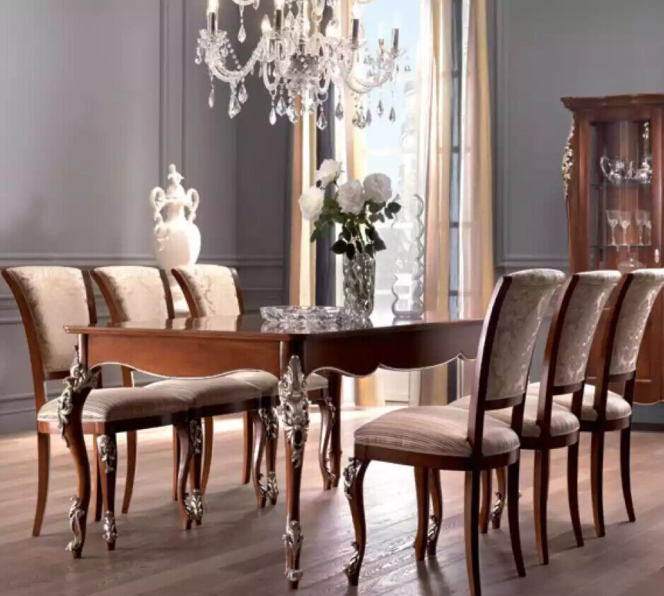 Entdecken Sie das luxuriöse Esszimmer Set von Giuliacasa aus Italien! Dieses exquisite Set besteht aus einem Esstisch und 6 gepolsterten Stühlen, die mit hochwertigem Holz gefertigt sind. Der Esstisch beeindruckt mit seinen Maßen von ca. 200 x 100 x 80 cm und ist erweiterbar durch zwei 39 cm lange Einsätze. Die eleganten Stühle haben die Maße von ca. 54 x 59 x 101 cm und bieten optimalen Sitzkomfort. In zeitlosem Design und in der Farbe wie abgebildet, fügt sich dieses Esszimmer Set nahtlos in jede Einrichtung ein. Erleben Sie italienischen Möbelstil, Qualität und Eleganz mit diesem exklusiven Set von Giuliacasa!