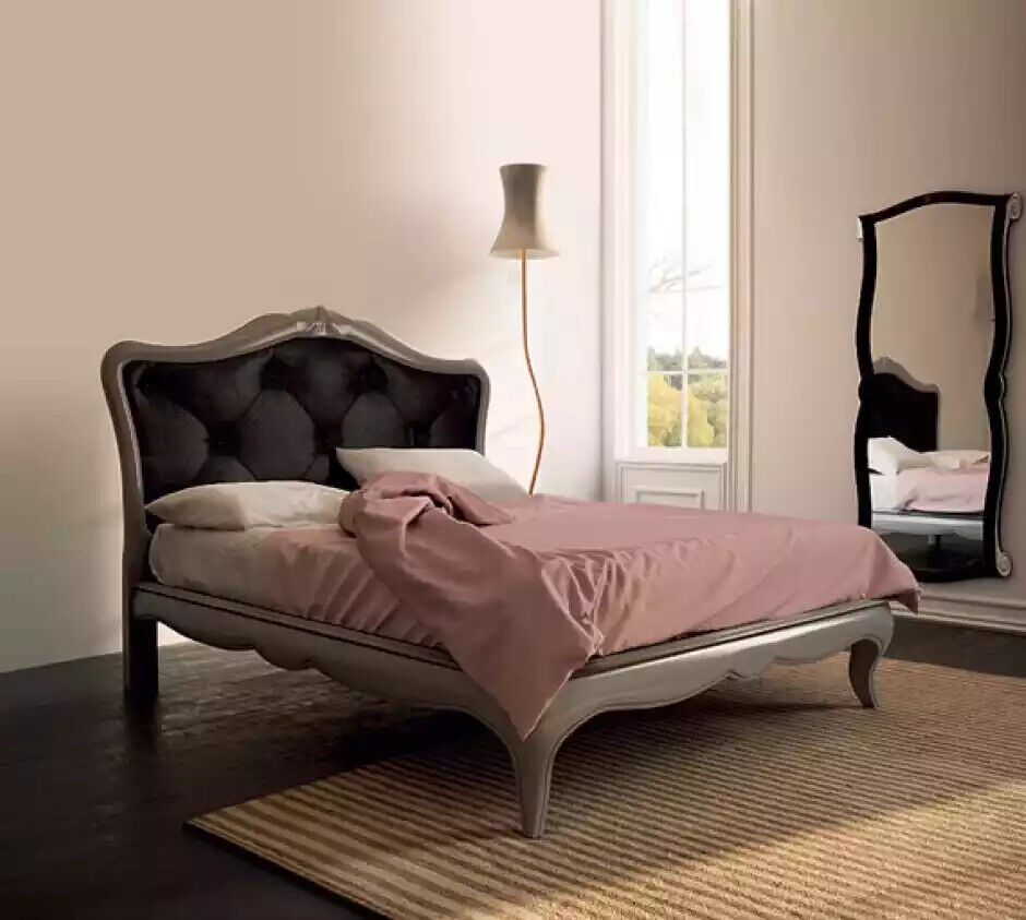 Bett Grau Luxus Holzbett Schlafzimmer Design Italienische Art déco Neu