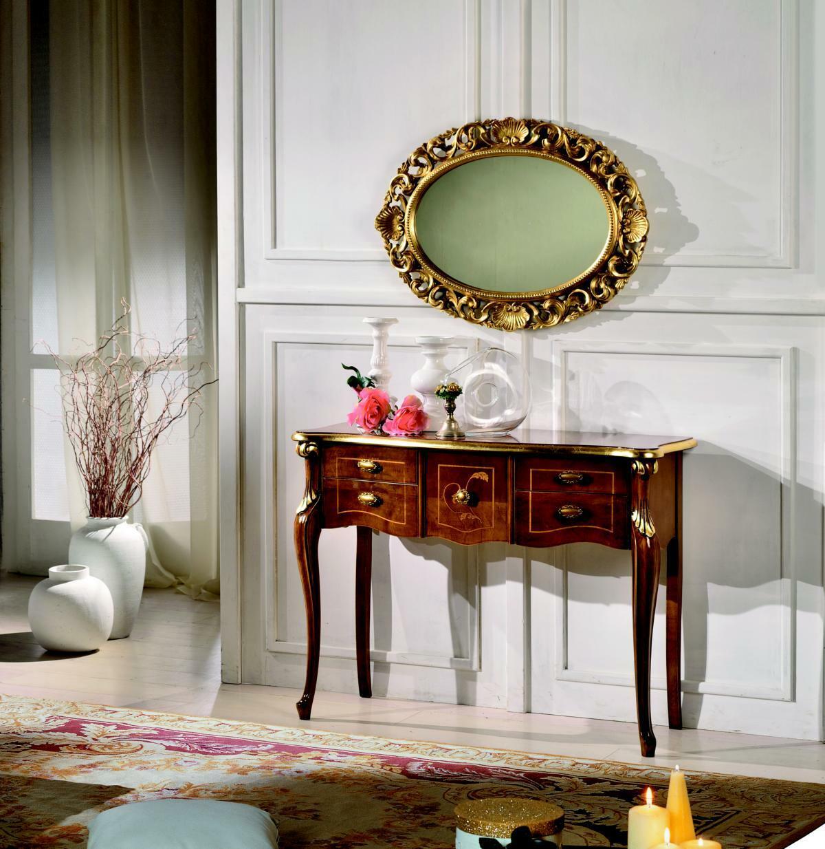 Holz Italienische Möbel Stil Barock Luxus Konsolentisch Spiegel Sideboard 2tlg Set Neu