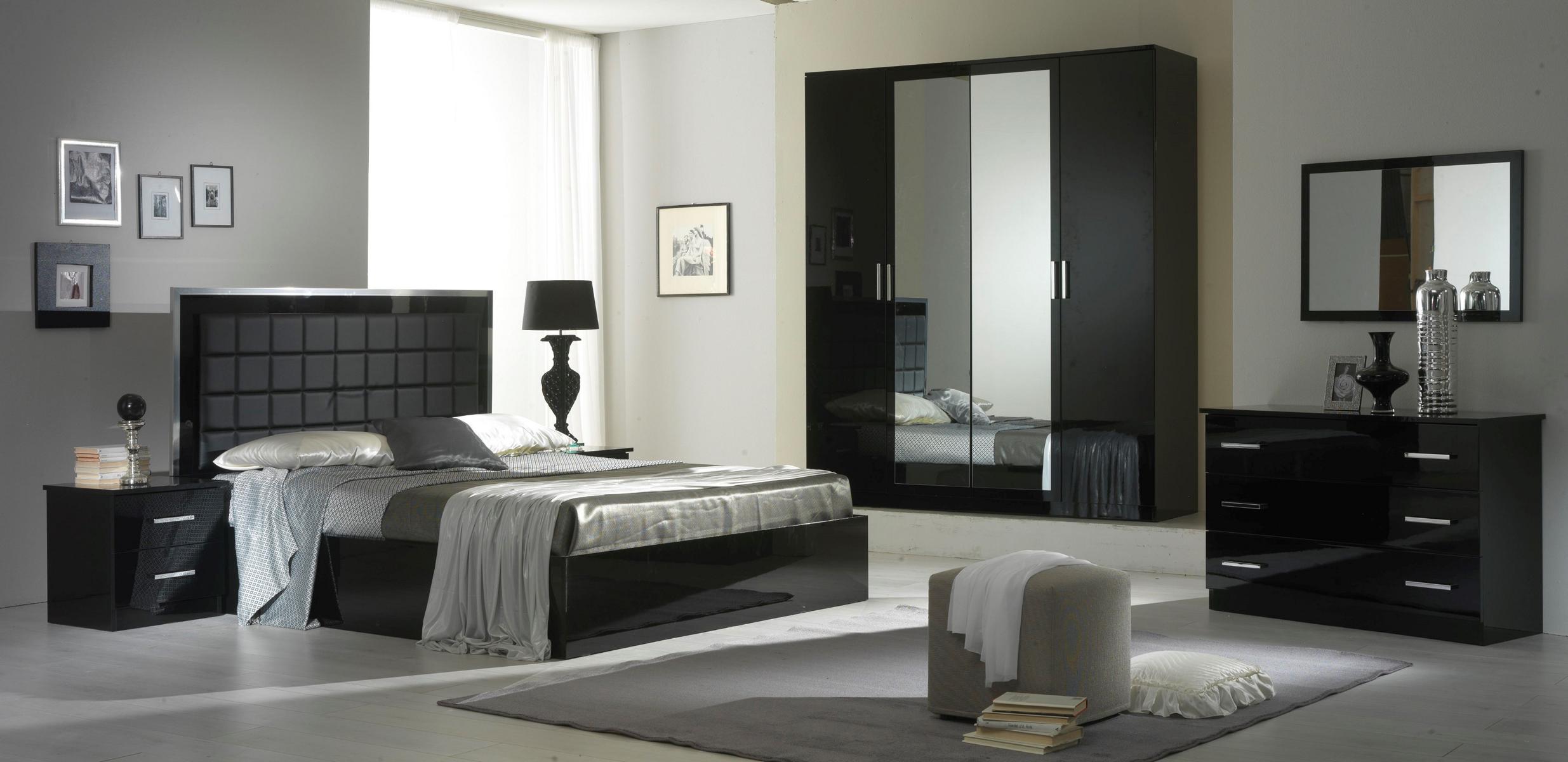 Schlafzimmer Möbel 3tlg. Set Hotel Bett + 2 Nachttische Hochglanz Betten Italien