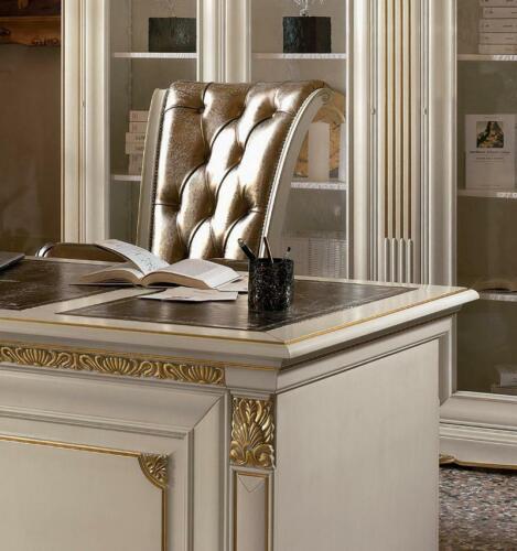 Entdecken Sie den Schreibtisch Büro Tisch im edlen Massivholz-Design im Barock-Rokoko-Antik-Stil von Claudio Saoncella! Hergestellt aus echtem Holz mit erstklassiger Verarbeitung und zeitlosem Design, ist dieser Schreibtisch perfekt für Ihr Büro oder Arbeitszimmer. Mit Maßen von ca. 186 cm Länge, 77 cm Höhe und 91 cm Tiefe bietet er ausreichend Platz für Ihre Arbeitsutensilien. Holen Sie sich jetzt dieses exklusive Möbelstück für ein elegant eingerichtetes Zuhause!