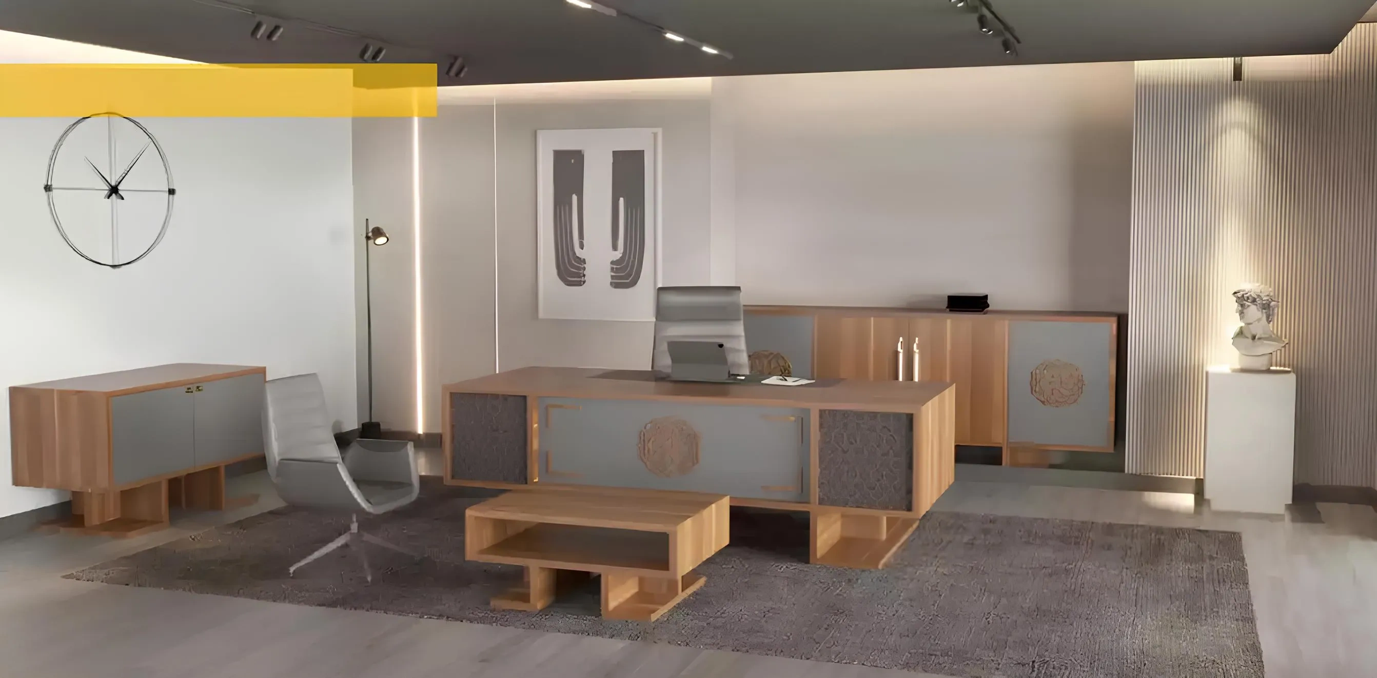 Moderní rohový stůl z dřeva, designový nábytek