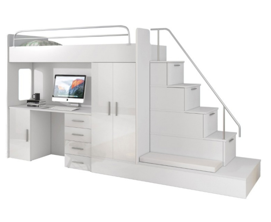 Weiß Kinder Hochbett Etagenbett Doppelstockbett Bett Hochglanz Möbel