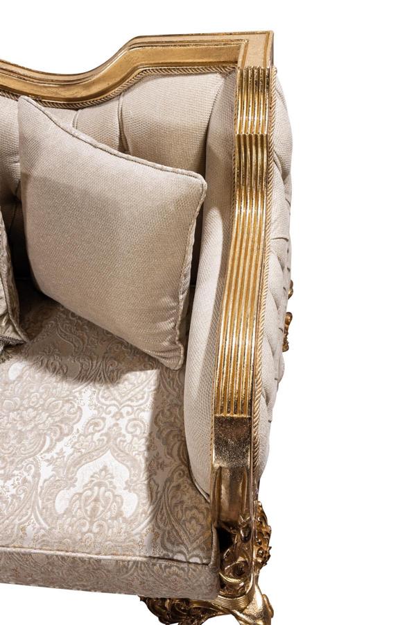 Erwecken Sie den Glanz vergangener Epochen in Ihr Zuhause mit unserem dreisitzigen klassischen barocken Rokoko-Polstersofa in Goldholzqualität. Mit einer exquisiten Kombination aus edlem Holz und Textil bietet dieses Sofa nicht nur Stil, sondern auch Komfort. Die Maße von ca. 218 x 85 x 110 cm machen es zu einem eindrucksvollen Blickfang in jedem Raum. Die Sitzhöhe von ca. 44 cm und die Sitztiefe von ca. 56 cm sorgen für entspanntes Sitzen. In der Farbe wie abgebildet oder nach Anfrage erhältlich. Bringen Sie Luxus und Eleganz in Ihr Zuhause mit diesem einzigartigen Möbelstück!