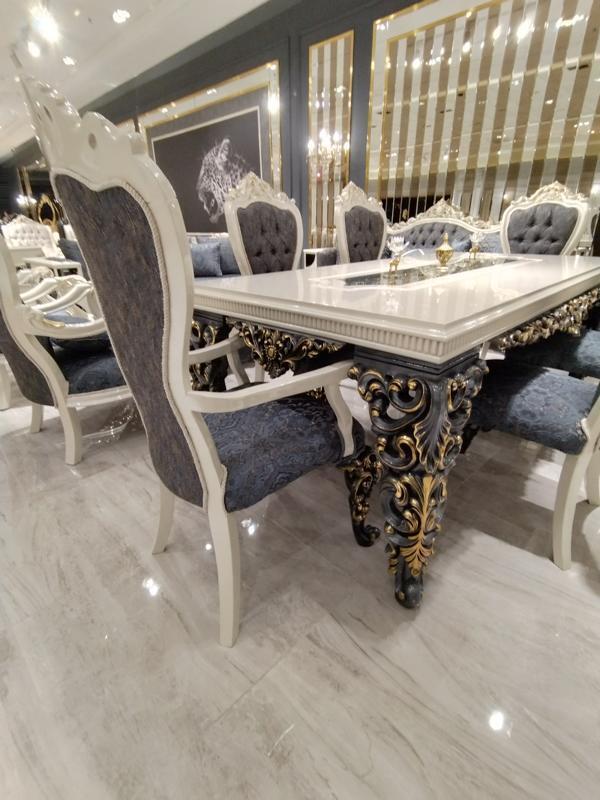 Glamouröses Esszimmer Set Esstisch + 6x Stühle + Kommod mit Spiegel 8 tlg