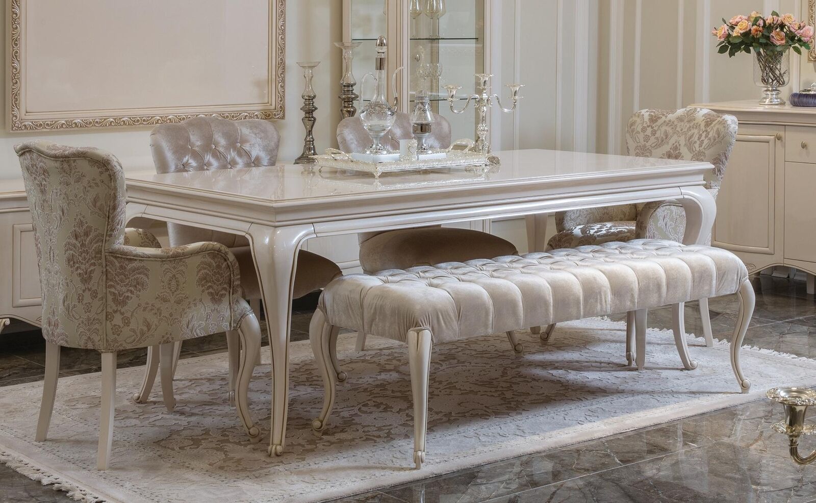 Klassische Esszimmer Garnitur Tisch Hocker Essgarnitur Stühle Set 6tlg Neu