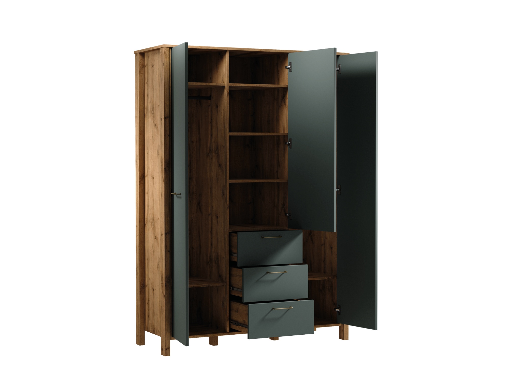 Die Velká volně stojící šatní skříň verkörpert zeitlose Eleganz und erlesenes Design. Mit ihrer großzügigen Dimension und der tiefgrünen Farbgebung fügt sie sich harmonisch in jedes exklusive Wohnambiente ein. Hergestellt aus hochwertigen Materialien, bietet sie nicht nur ausreichend Platz für Ihre Garderobe, sondern auch eine stilvolle Präsentation Ihrer Modeaccessoires. Die integrierten Ramínky und praktischen Zásuvky gewährleisten eine optimale Organisation und verleihen Ihrem Raum eine luxuriöse Note. Diese exquisite Schatní skříň ist mehr als nur ein Möbelstück; sie ist ein Statement für einen anspruchsvollen Lebensstil, der Qualität und Stil vereint. Entscheiden Sie sich für dieses Meisterwerk und setzen Sie einen markanten Akzent in Ihrem Zuhause.