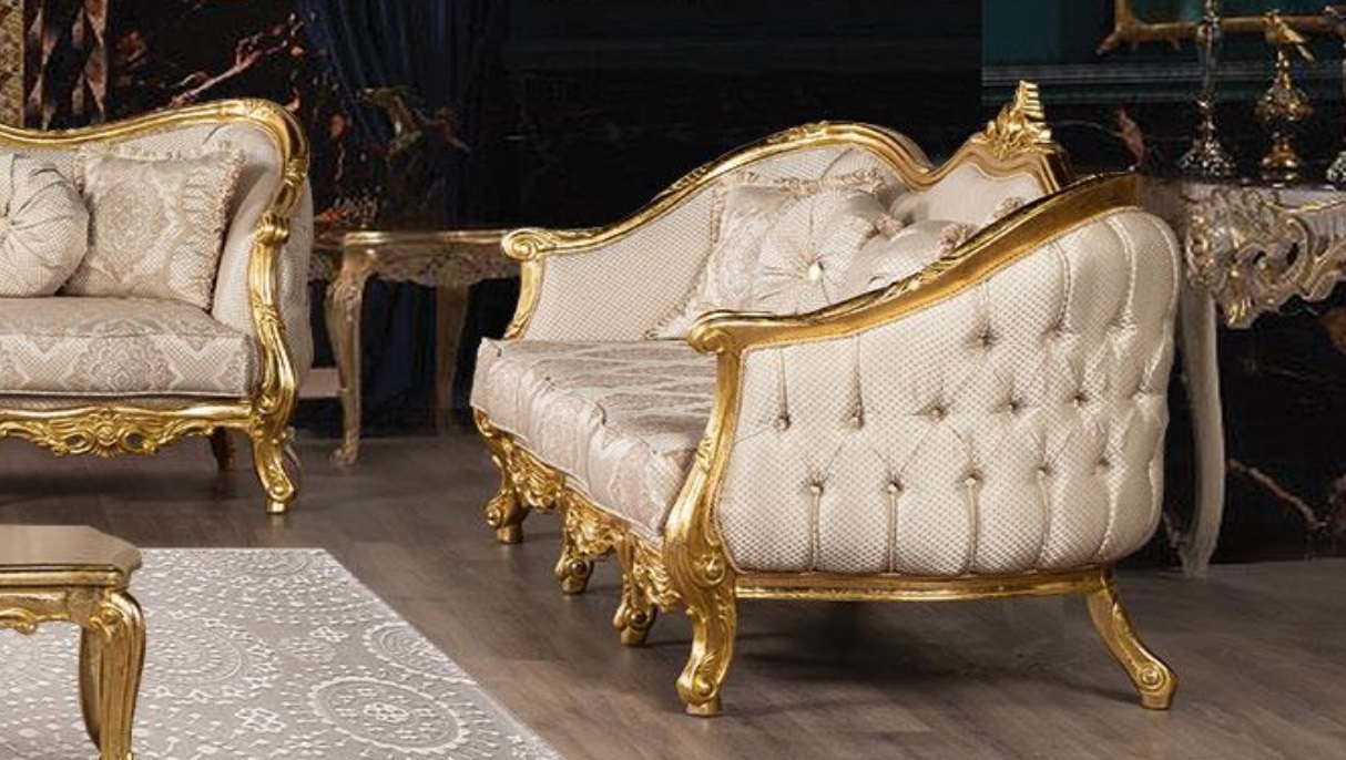 Dreisitzer Sofa 3 Sitzer Barock Rokoko Sofa Sofas Sessel Sitz Stoff Stil couch