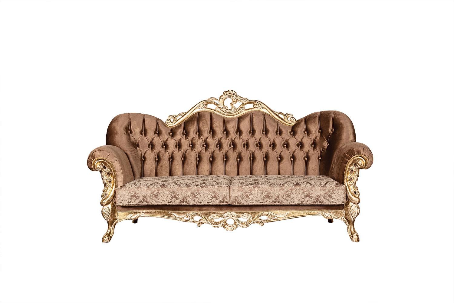 Erwecken Sie den Charme vergangener Epochen mit unserer klassischen Dreisitzer Barock Couch Einrichtung 3er im französischen Stil. Dieses exklusive Möbelstück ist nicht nur ein Blickfang, sondern auch äußerst komfortabel. Gefertigt aus hochwertigem Holz und edlem Textil, besticht dieses Sofa durch seine zeitlose Eleganz. Mit Maßen von ca. 228 x 85 x 123 cm bietet dieses Sofa genügend Platz für entspannte Stunden alleine oder mit Ihren Liebsten. Die Sitzhöhe von ca. 44 cm und die Sitztiefe von ca. 56 cm sorgen für maximalen Komfort und Gemütlichkeit. Diese Barock Couch ist in der klassischen Farbe wie abgebildet erhältlich, aber natürlich stehen Ihnen auch weitere Farboptionen zur Auswahl. Lassen Sie sich von unserer breiten Palette inspirieren und wählen Sie die perfekte Nuance, die zu Ihrem Einrichtungsstil passt. Ganz nach unserem Motto der Anpassbarkeit bieten wir auch die Möglichkeit, dieses Sofa nach Ihren individuellen Wünschen anzupassen. Nehmen Sie Kontakt mit uns auf und erfahren Sie mehr über die verschiedenen Farben und Materialoptionen, die für dieses exklusive Möbelstück zur Verfügung stehen. Bringen Sie mit diesem französischen Designmöbelstück Eleganz und Stil in Ihr Zuhause!