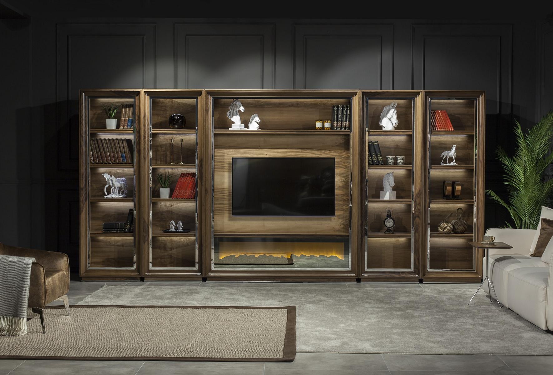 Luxusní obývací stěna 448 cm s krbem z dřeva | xlmoebel.at