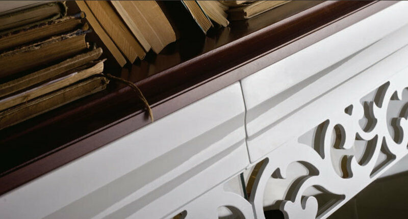 Rückwand & Einlegeböden: MDF (Mitteldichte Holzfaserplatte), furniert & lackiert