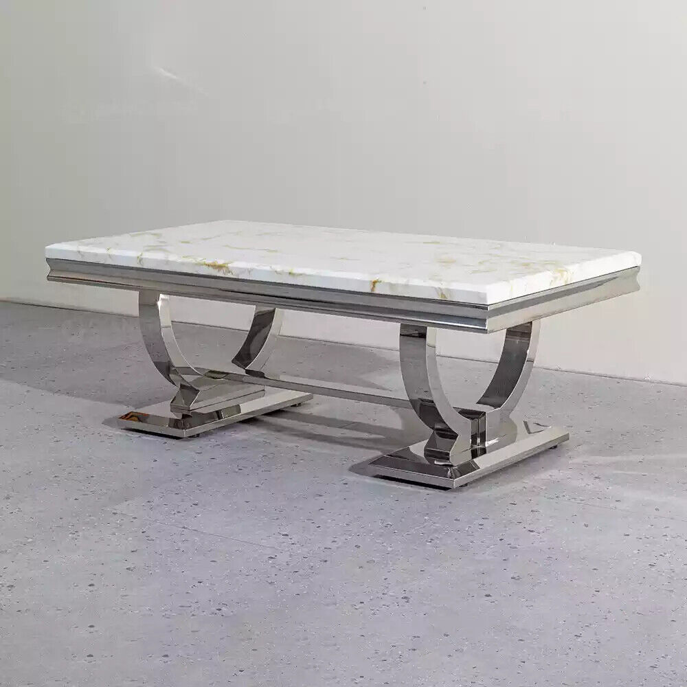 Moderner Grauer Couchtisch Edelstahltisch Wohnzimmer Tische Luxus Design