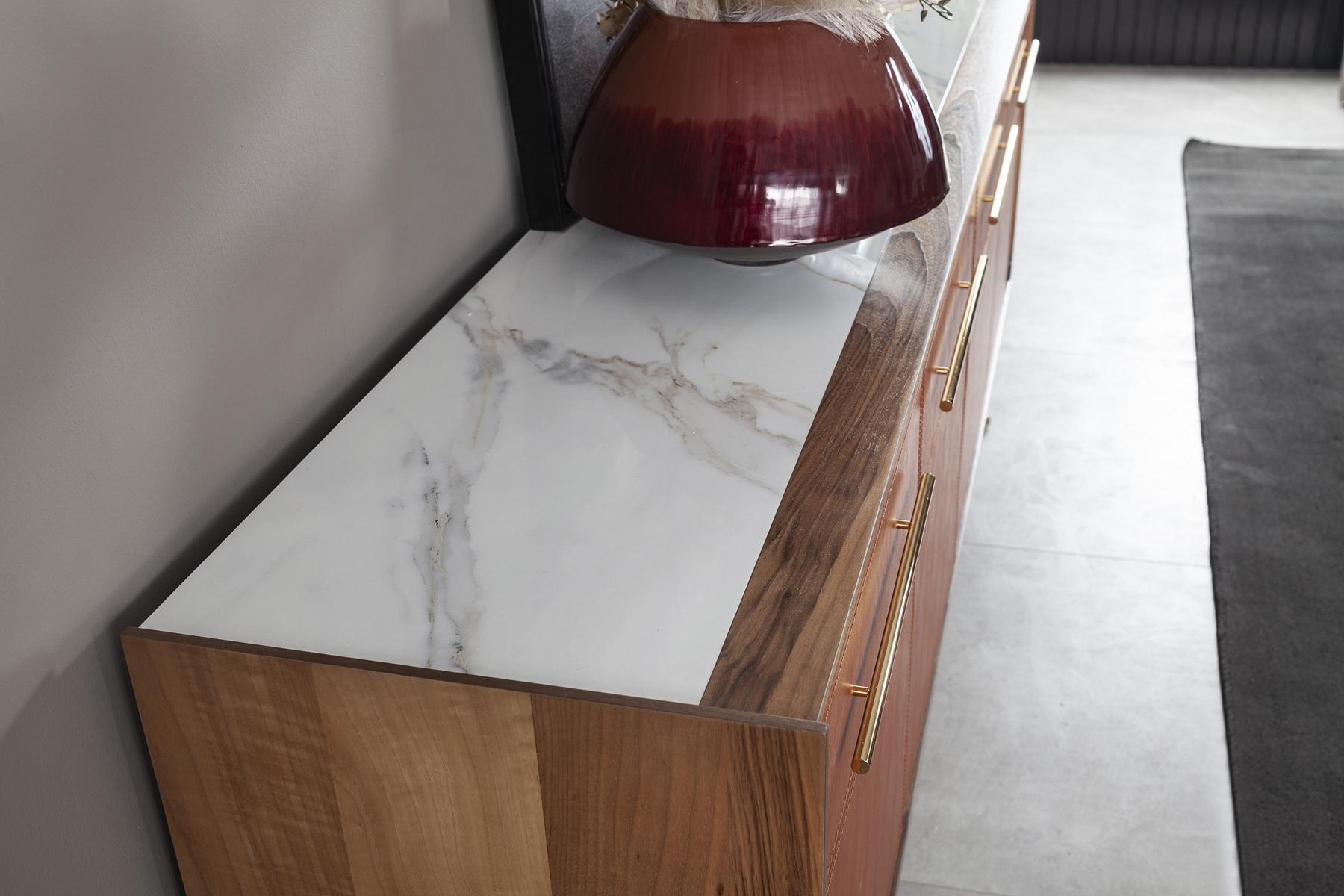Die Oranžová skříňka, ein Meisterwerk der Eleganz, verkörpert zeitlose Raffinesse und erstklassiges Design. Mit einer großzügigen Breite von 240 cm bietet dieses Sideboard nicht nur ausreichend Stauraum, sondern auch eine beeindruckende Bühne für Ihre wertvollen Gegenstände. Die harmonische, braune Farbgebung fügt sich nahtlos in jedes Interieur ein und strahlt eine subtile Wärme aus. Die kunstvoll gefertigten Schubladen und Regale kombinieren Funktionalität mit ästhetischem Genuss, während die hochwertigen Materialien für Langlebigkeit und Stil stehen. Als Teil einer exklusiven Kollektion, die seit 20 Jahren luxuriöse Möbel bietet, ist dieses Sideboard die perfekte Wahl für ein anspruchsvolles Zuhause. Es definiert einen Lebensstil, der Luxus und Klasse verkörpert.