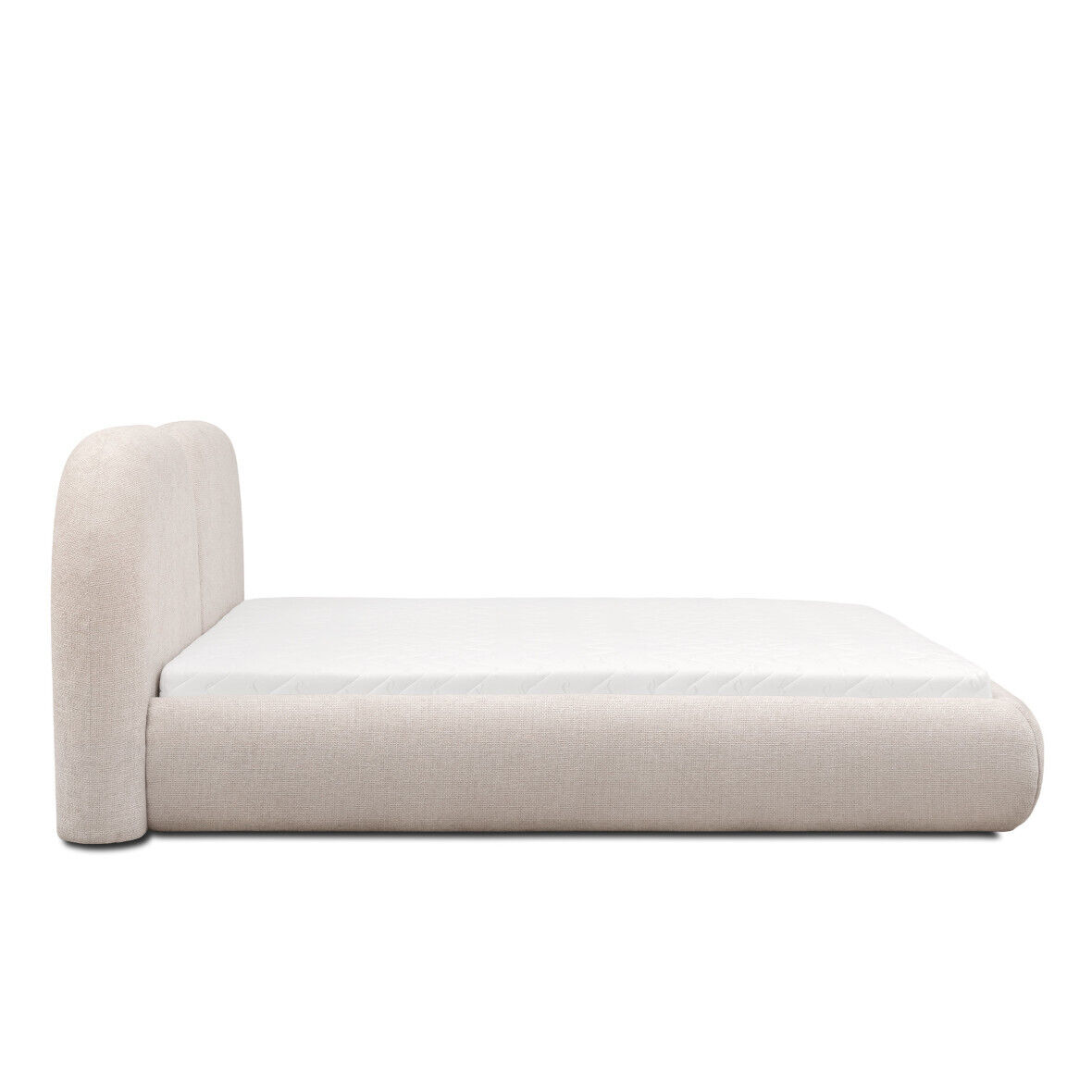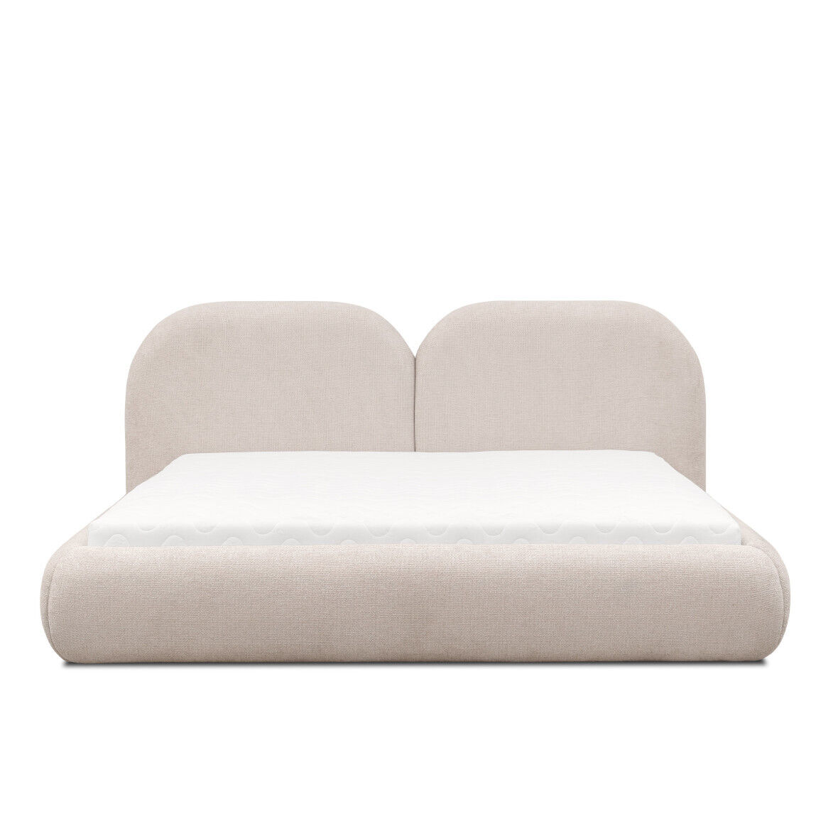 Beiges Schlafzimmer Doppelbett RundesTextil Kopfteil Polsterbetten Neu