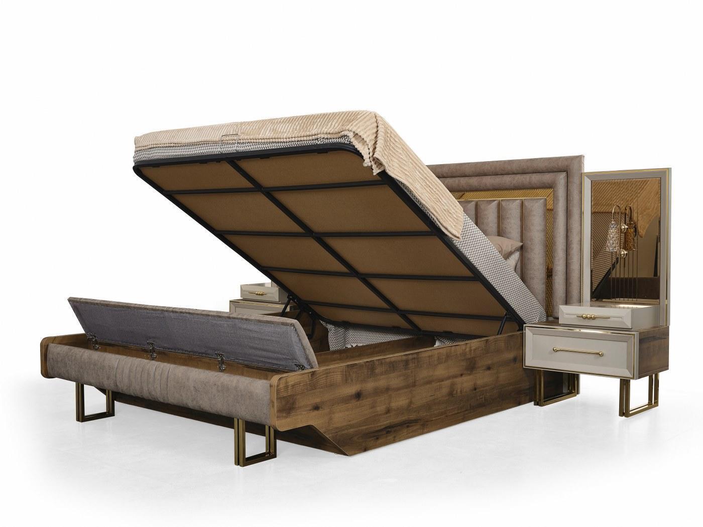 Komplette Schlafzimmermöbel Doppelbett Bett Nachttische Beige 3tlg