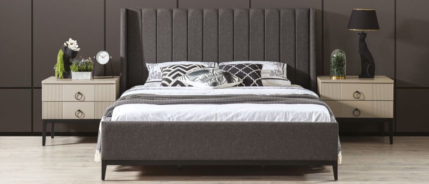 Stilvoll Schlafzimmer Set Bett und 2x Nachttische Luxus Möbel 3tlg Grau