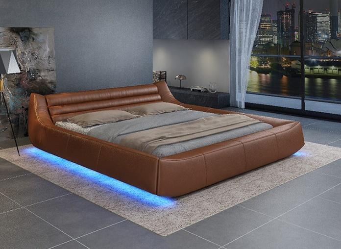 Kaufen Sie ein Doppelbett, Lederpolsterung des Bettes, Designermöbel, Holzmöbel