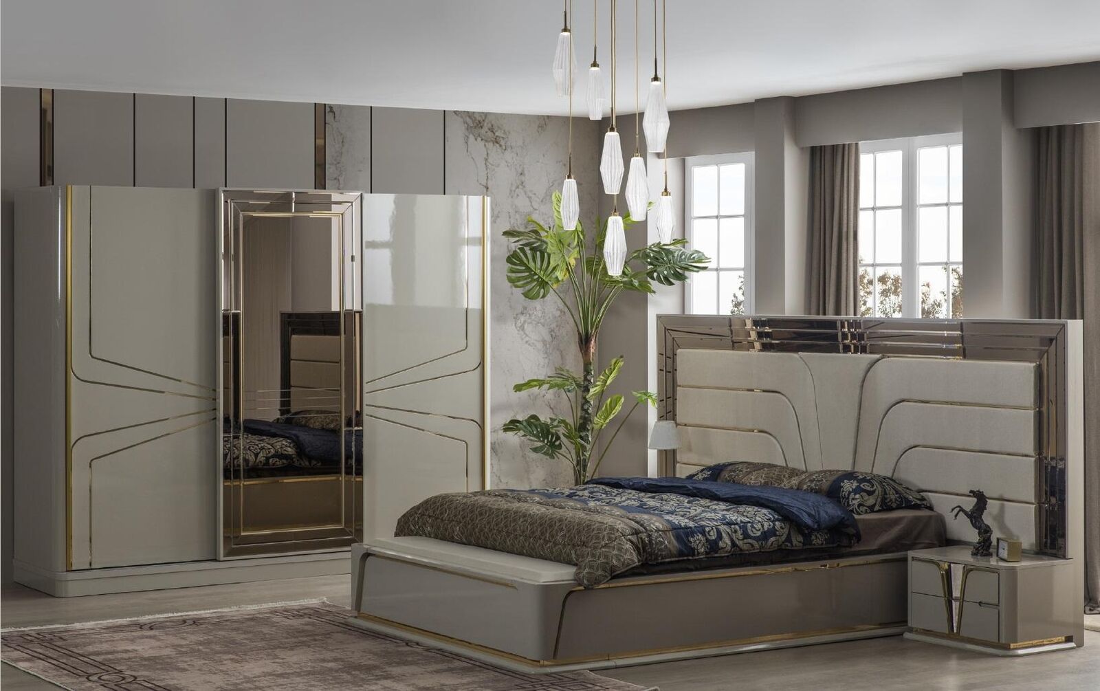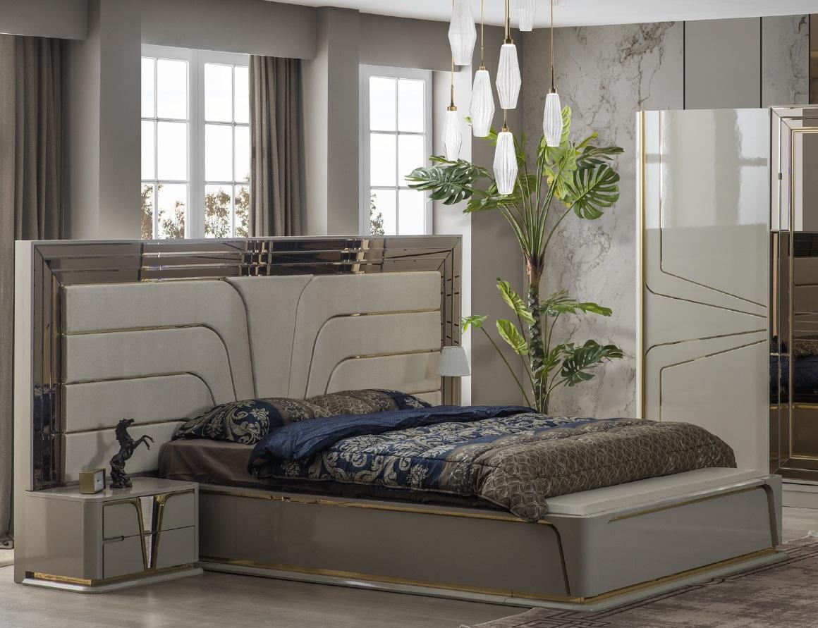 Garnitur Schlafzimmer Doppelbett Luxus Bett Modern Beige Set 3tlg Neu
